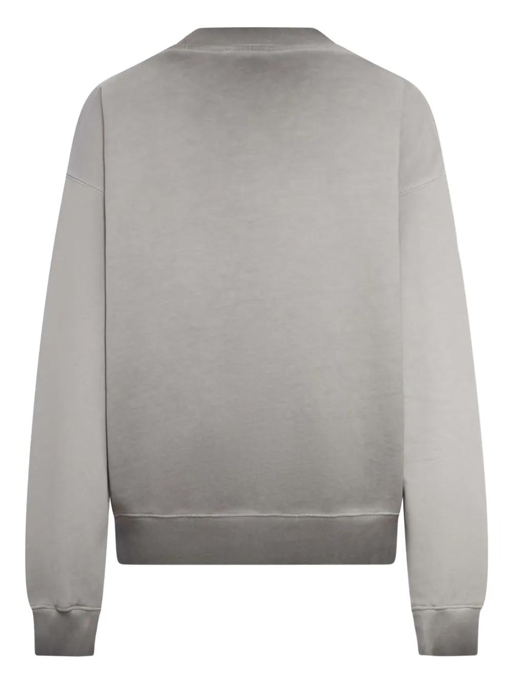 grey brushed cotton front logo print crew neck long cuffed sleeves dropped shoulders