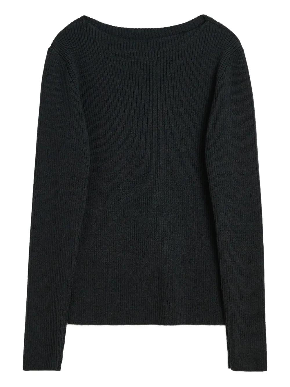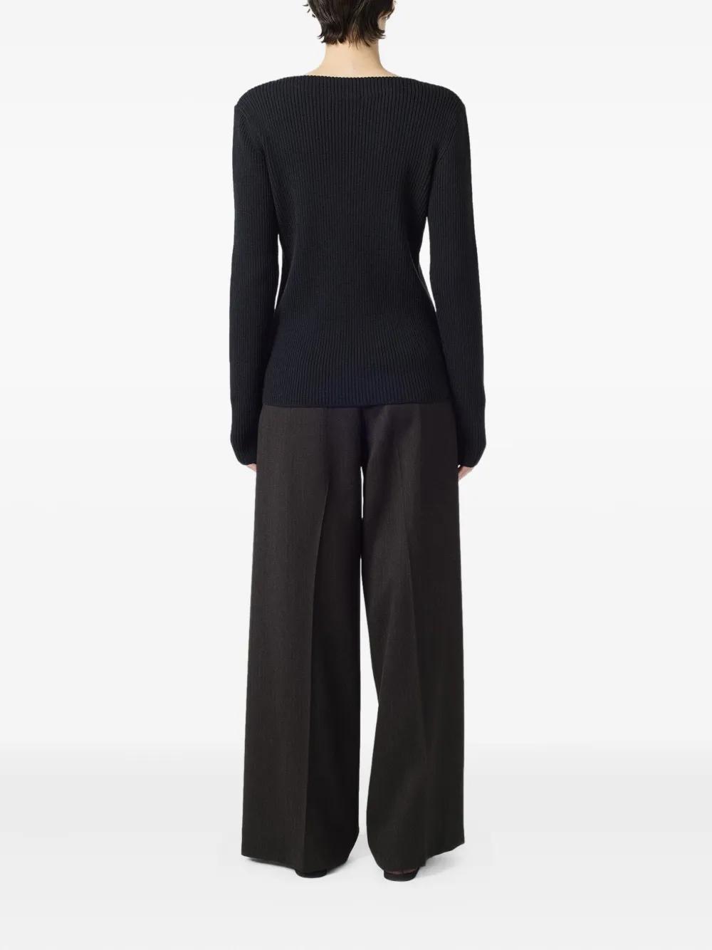white cashmere knitted construction ribbed trim crew neck long sleeves embroidered logo to the side straight hem