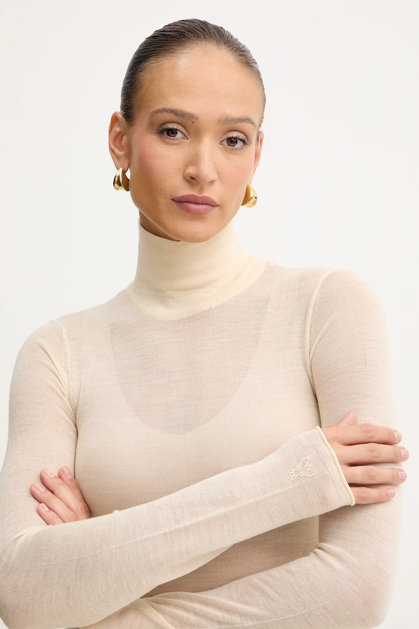 Patrizia Pepe sweter wełniany damski kolor beżowy lekki z golfem 2K0347 K034