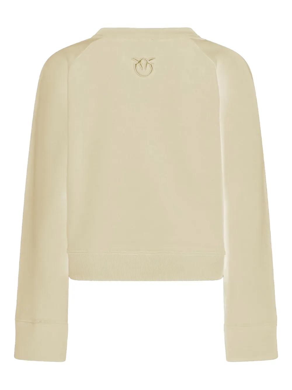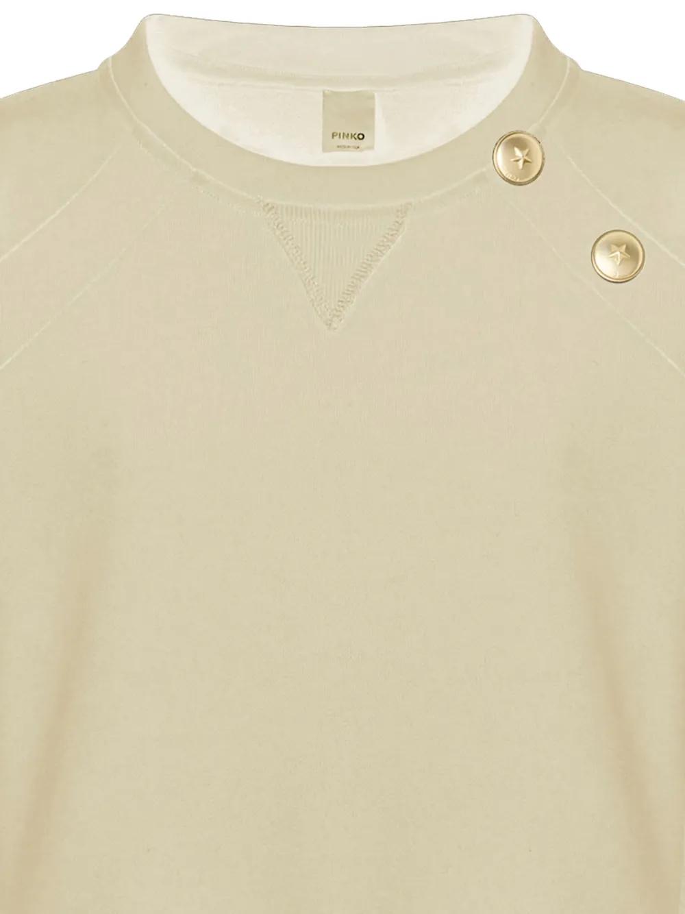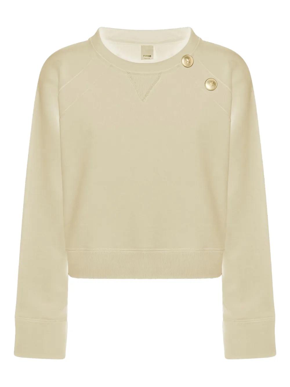sand beige crew neck button embellishment long raglan sleeves logo detail