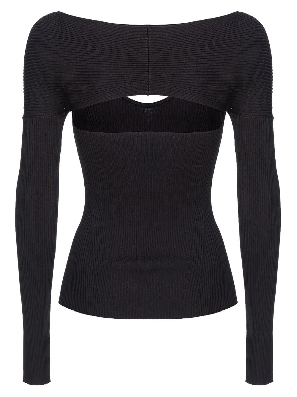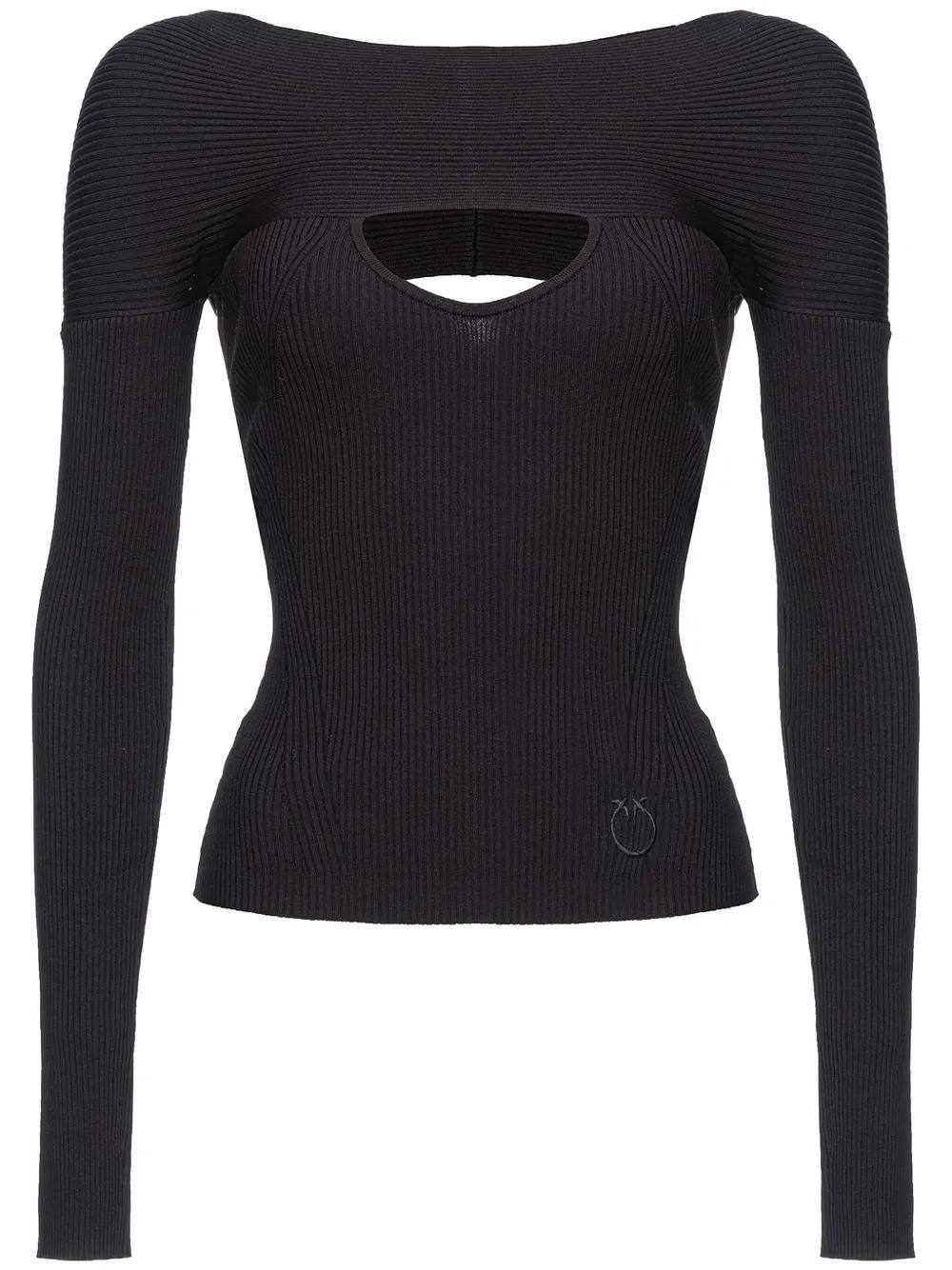 black ribbed knit panelled design embroidered Love Birds logo to the front boat neck long sleeves straight hem