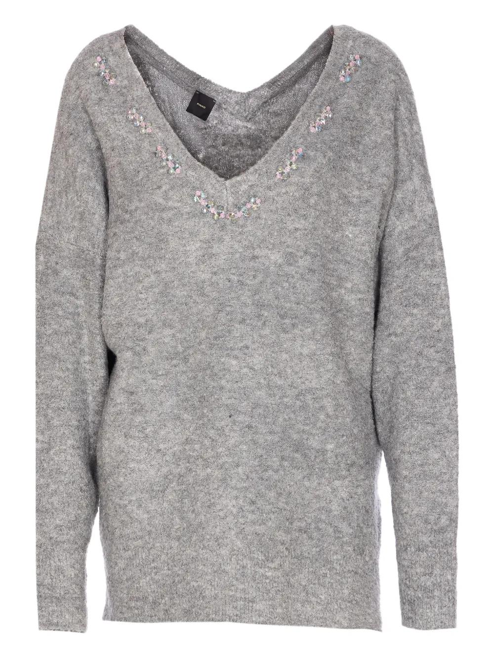 PINKO Dancing Queen embellished V-neck sweater - Grey