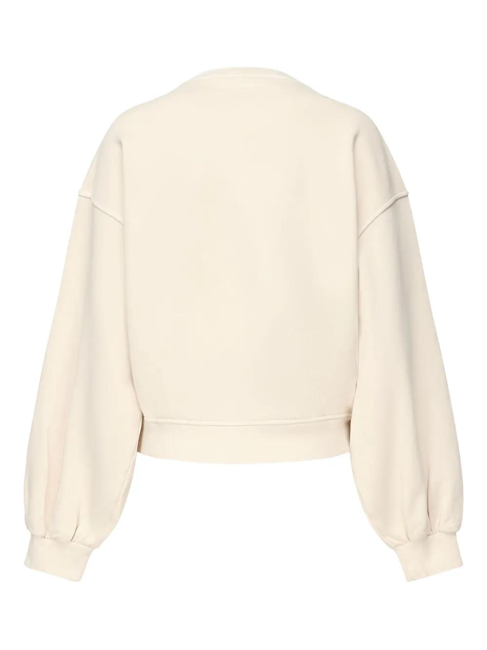 beige embroidered logo balloon sleeves round neck cropped hem