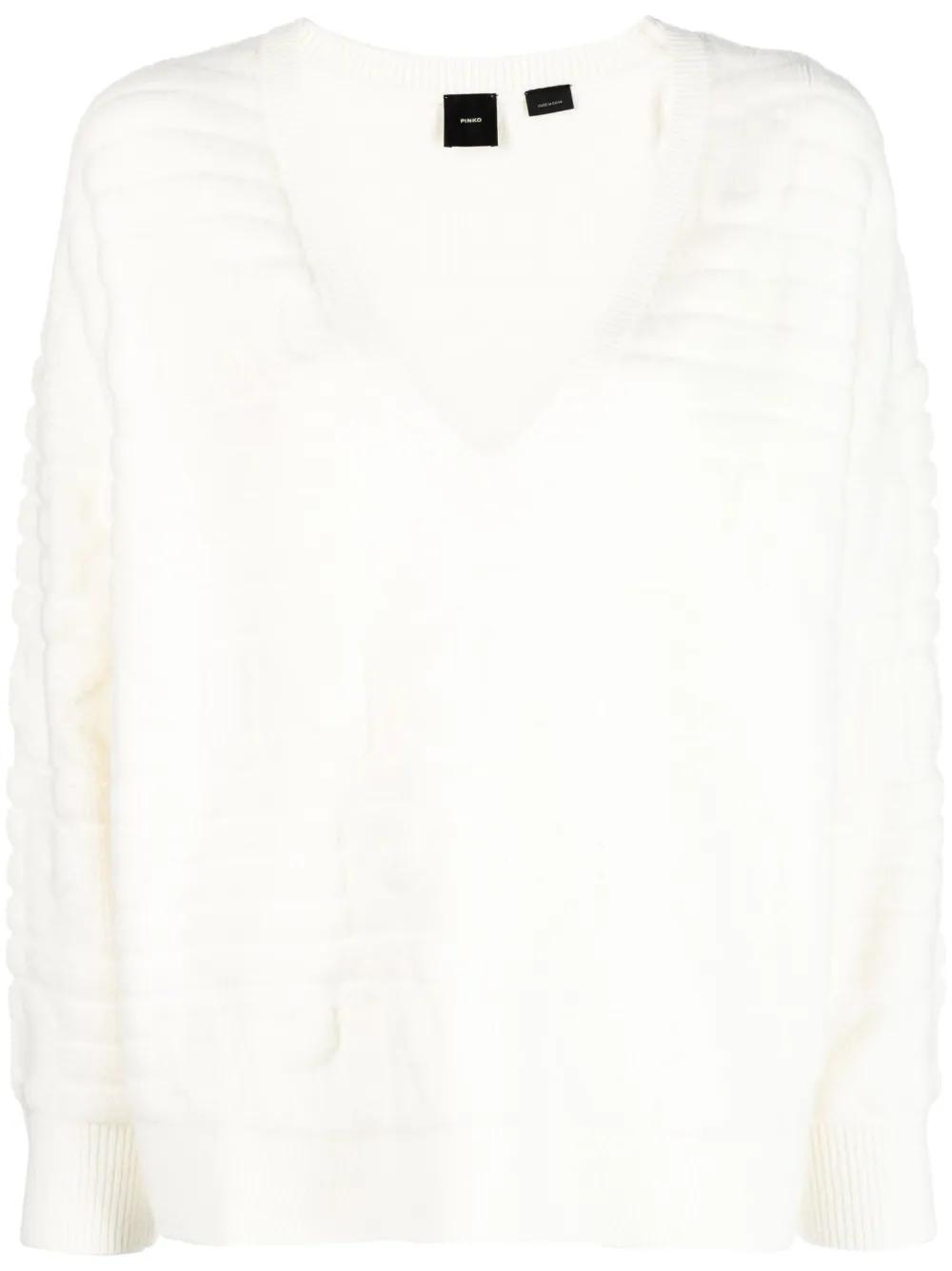 white intarsia-knit logo V-neck long sleeves ribbed cuffs and hem