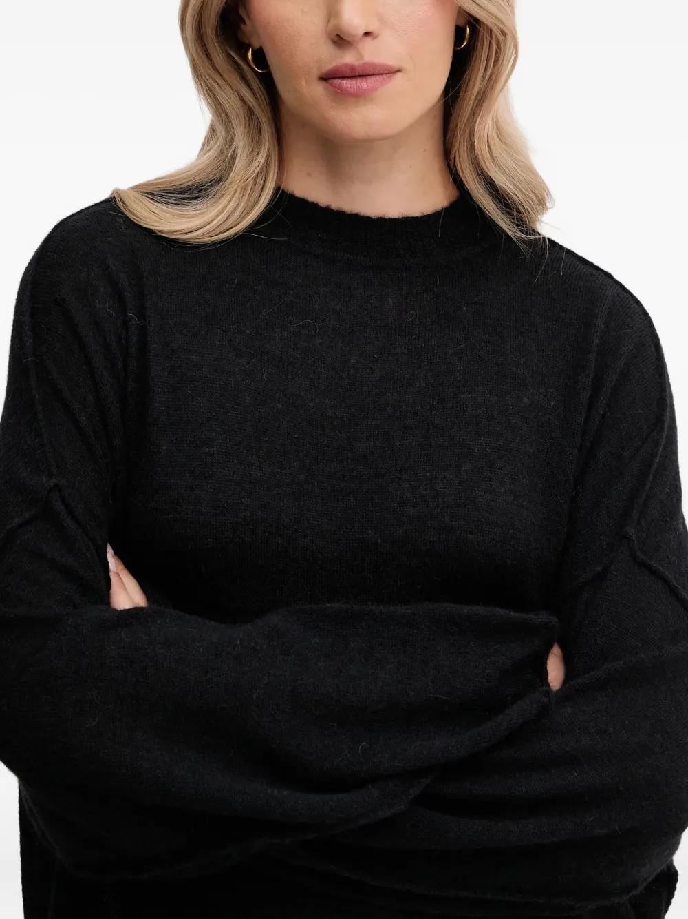 black wool blend knitted construction ripped detailing plunging V-neck drop shoulder long sleeves