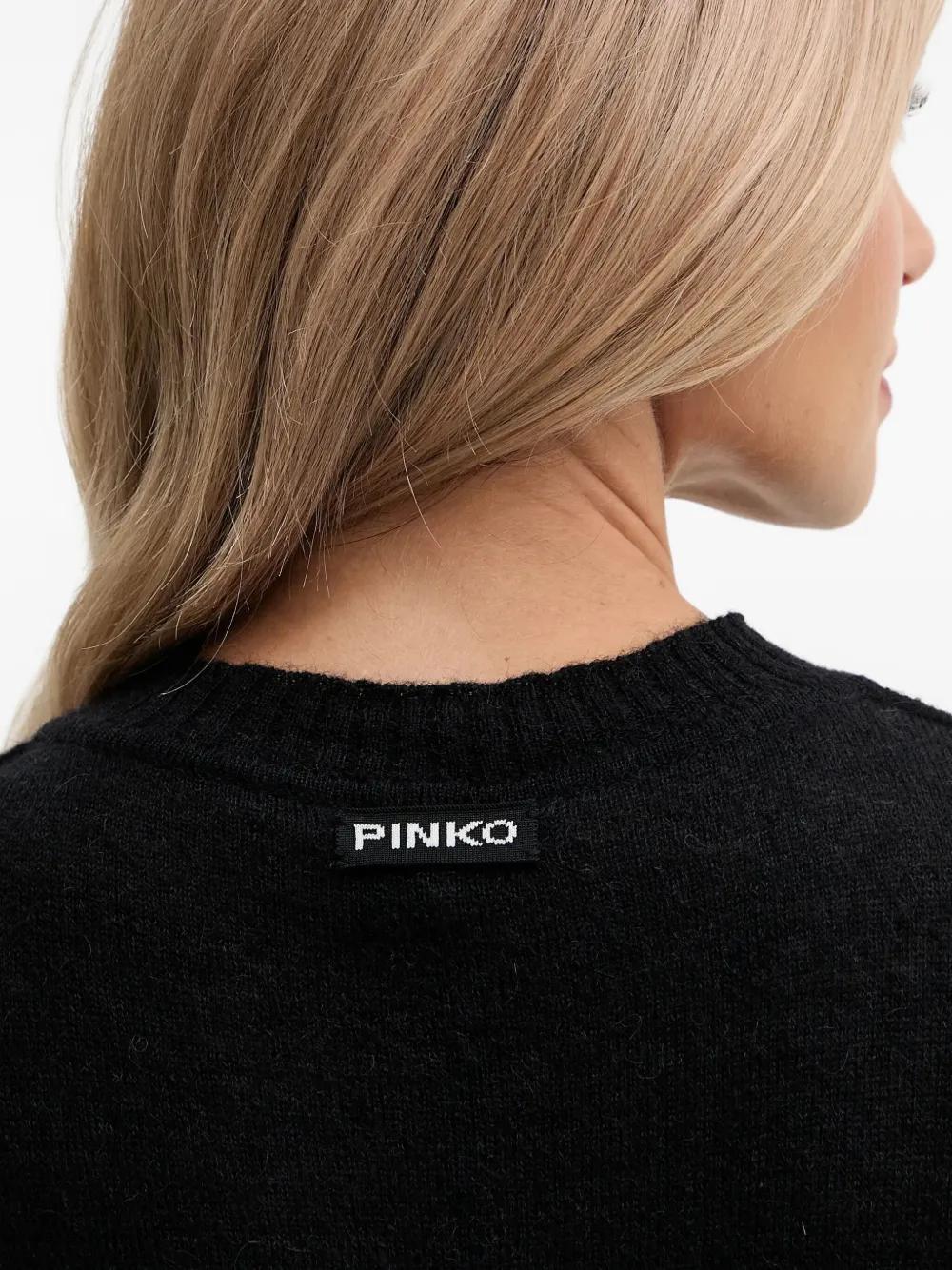 black/white virgin wool-silk blend intarsia knit polka dot pattern all-over logo pattern crew neck long sleeves ribbed cuffs and hem