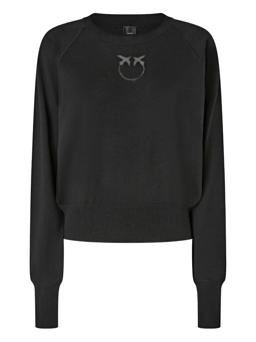 black crew neck signature Love Birds detail ribbed hem ribbed cuffs long sleeves