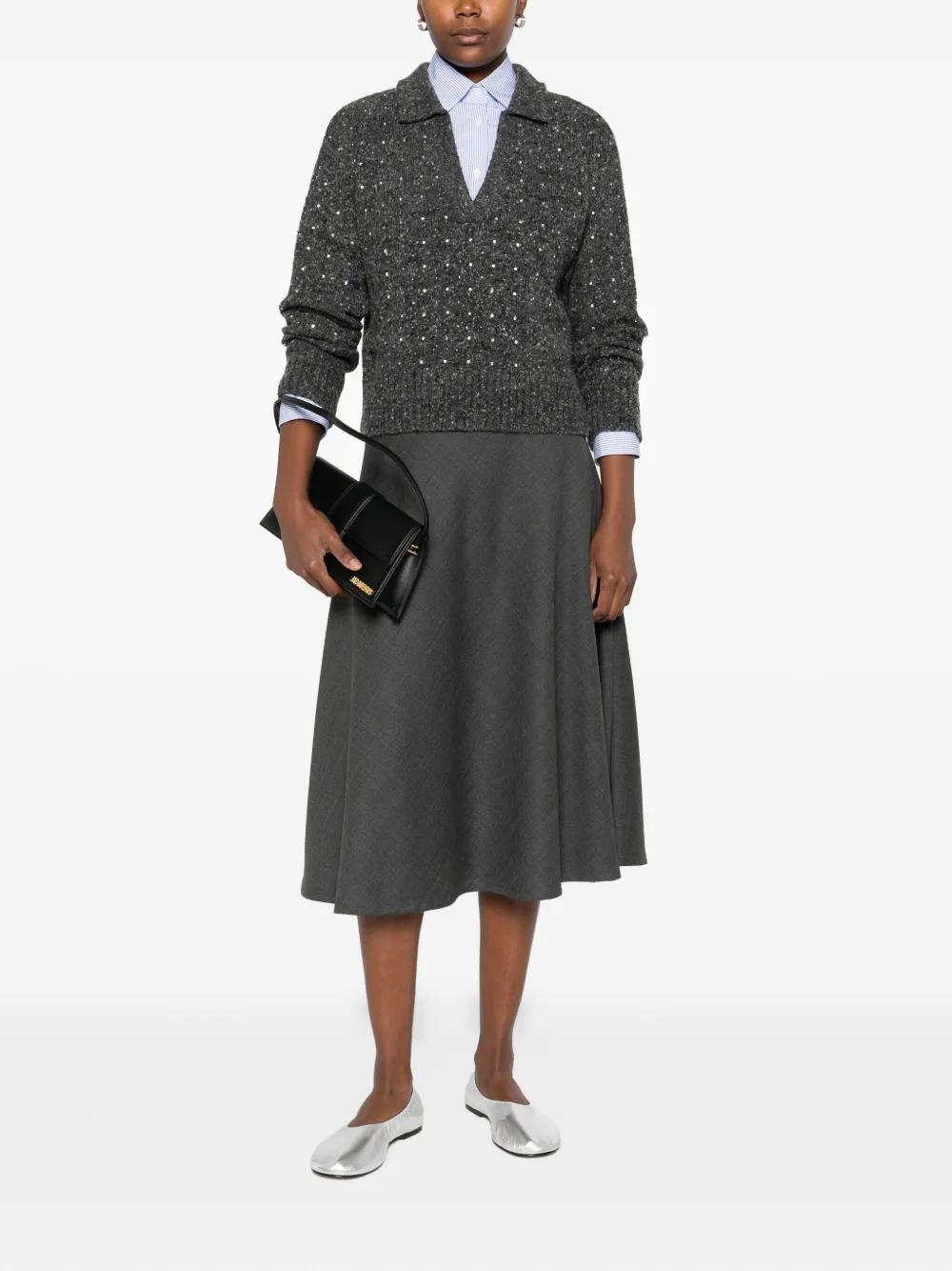 PINKO rhinetone-embellished collared sweater - Grey