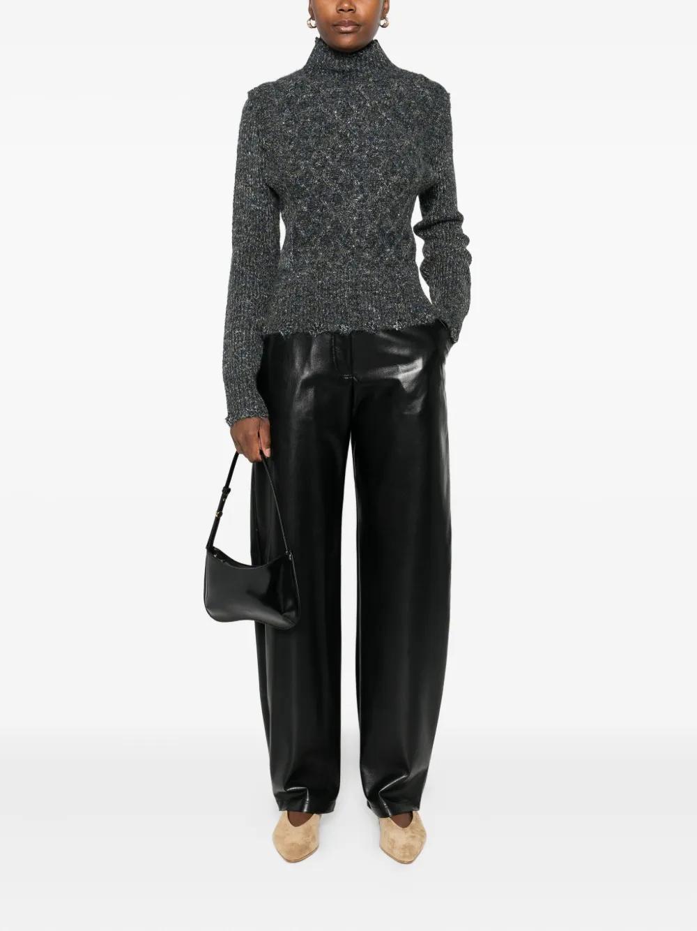 grey high neck jacquard knit ruffled cuffs and hem long sleeves
