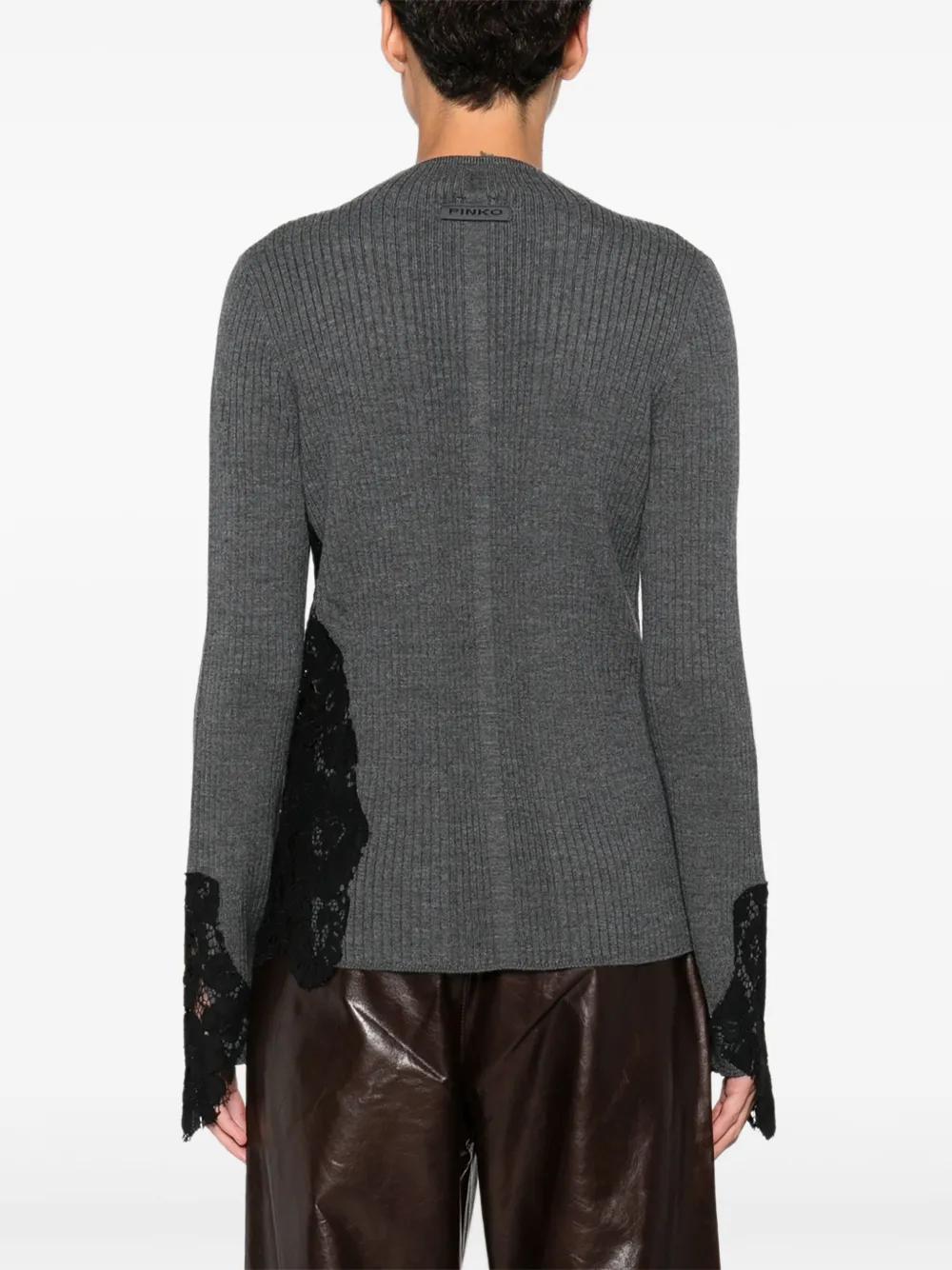 PINKO Samoa lace-insert ribbed sweater - Grey