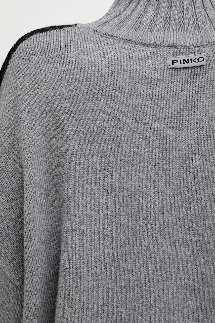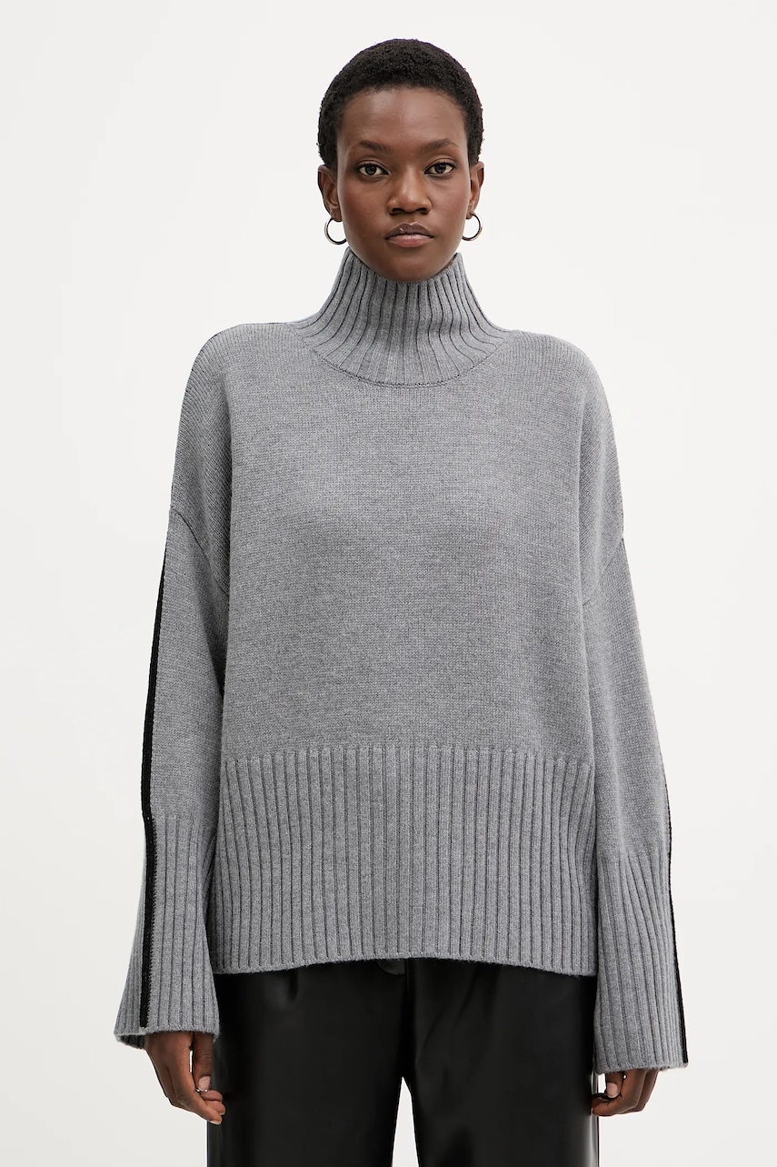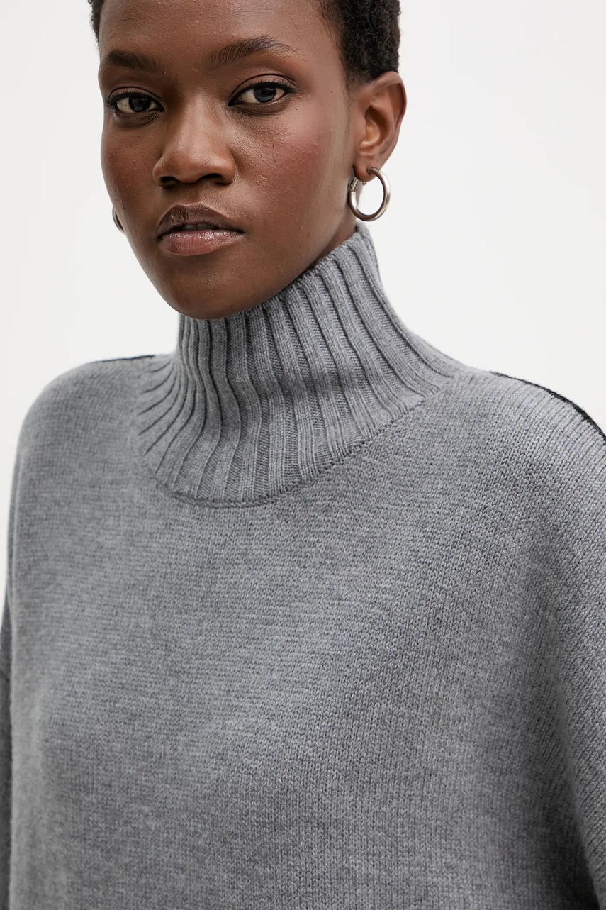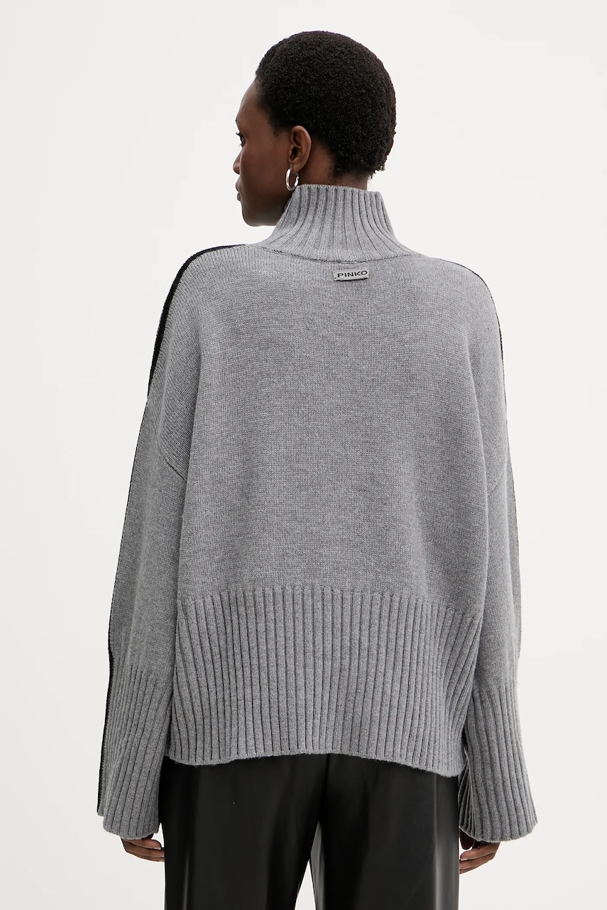 Pinko sweter wełniany damski kolor szary lekki z golfem 105396 A2PL