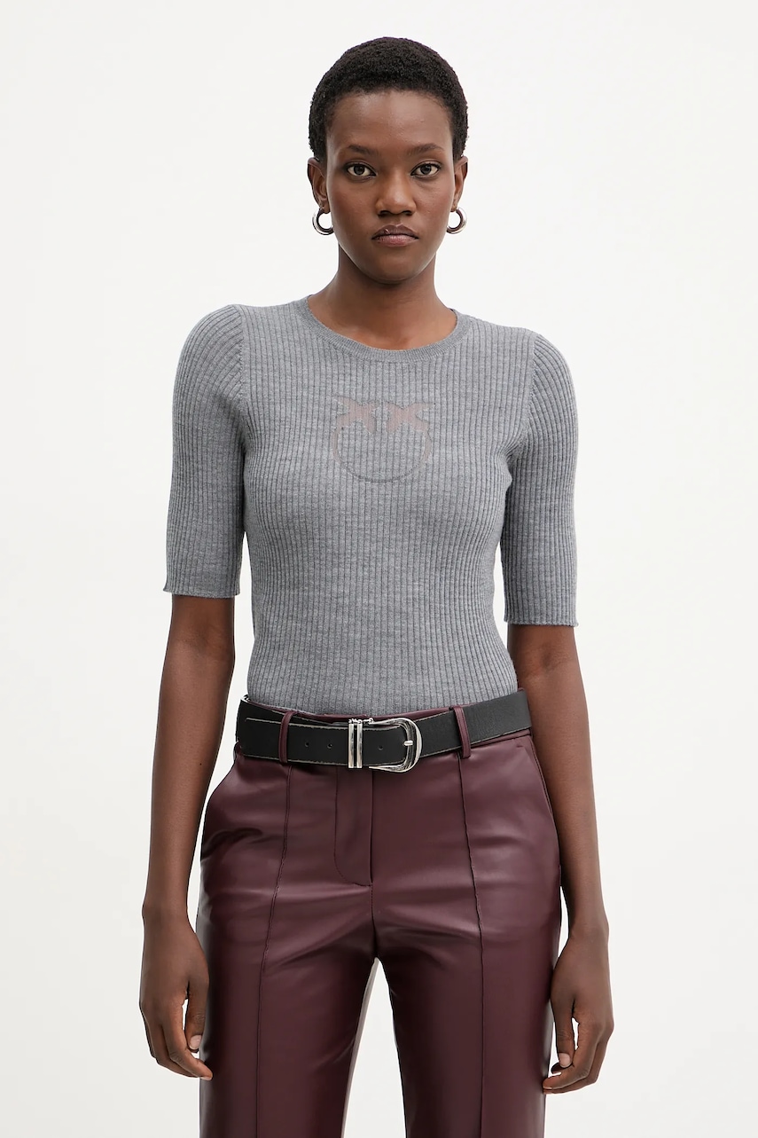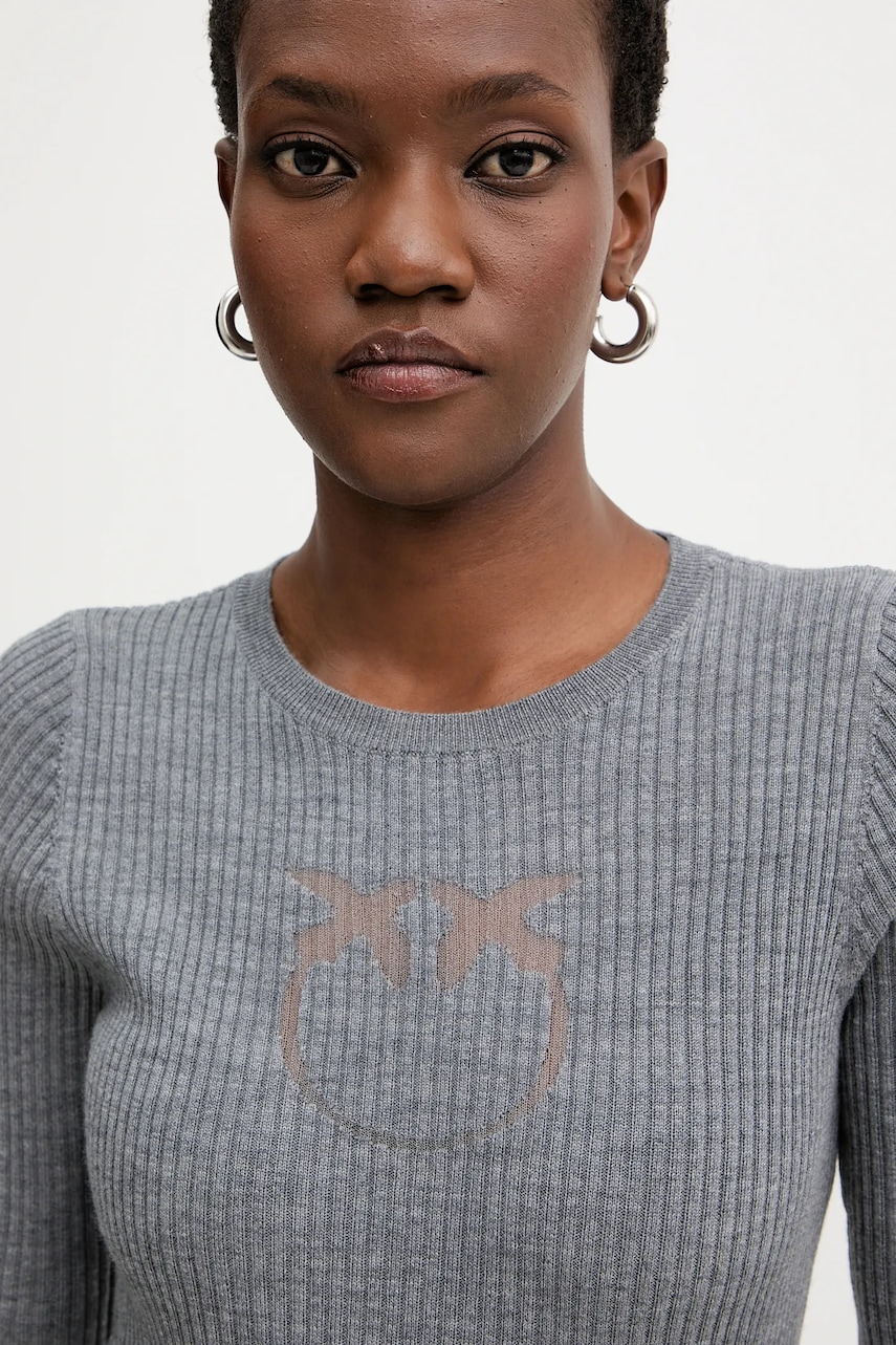 Pinko sweter wełniany damski kolor szary lekki