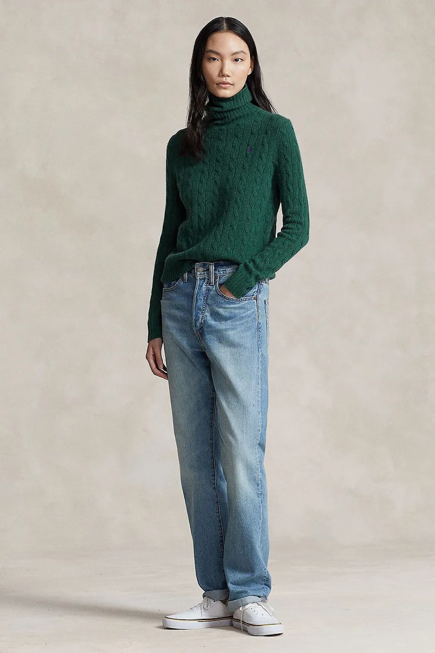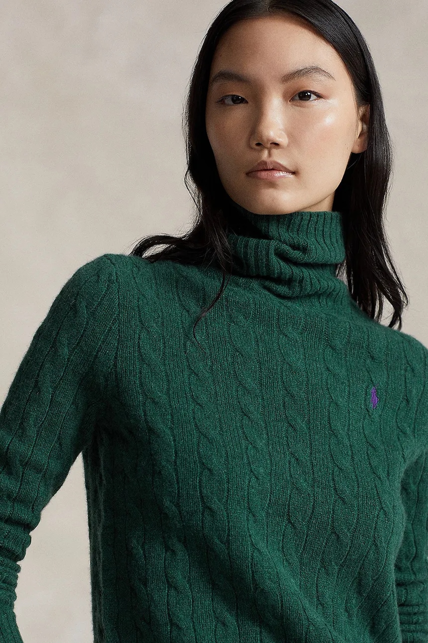 Polo Ralph Lauren sweter wełniany damski kolor zielony lekki z golfem 211888686