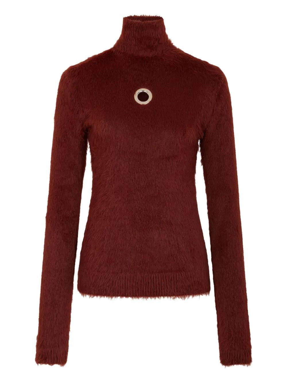 Rabanne eyelet-detail long-sleeves sweater - P213 RED