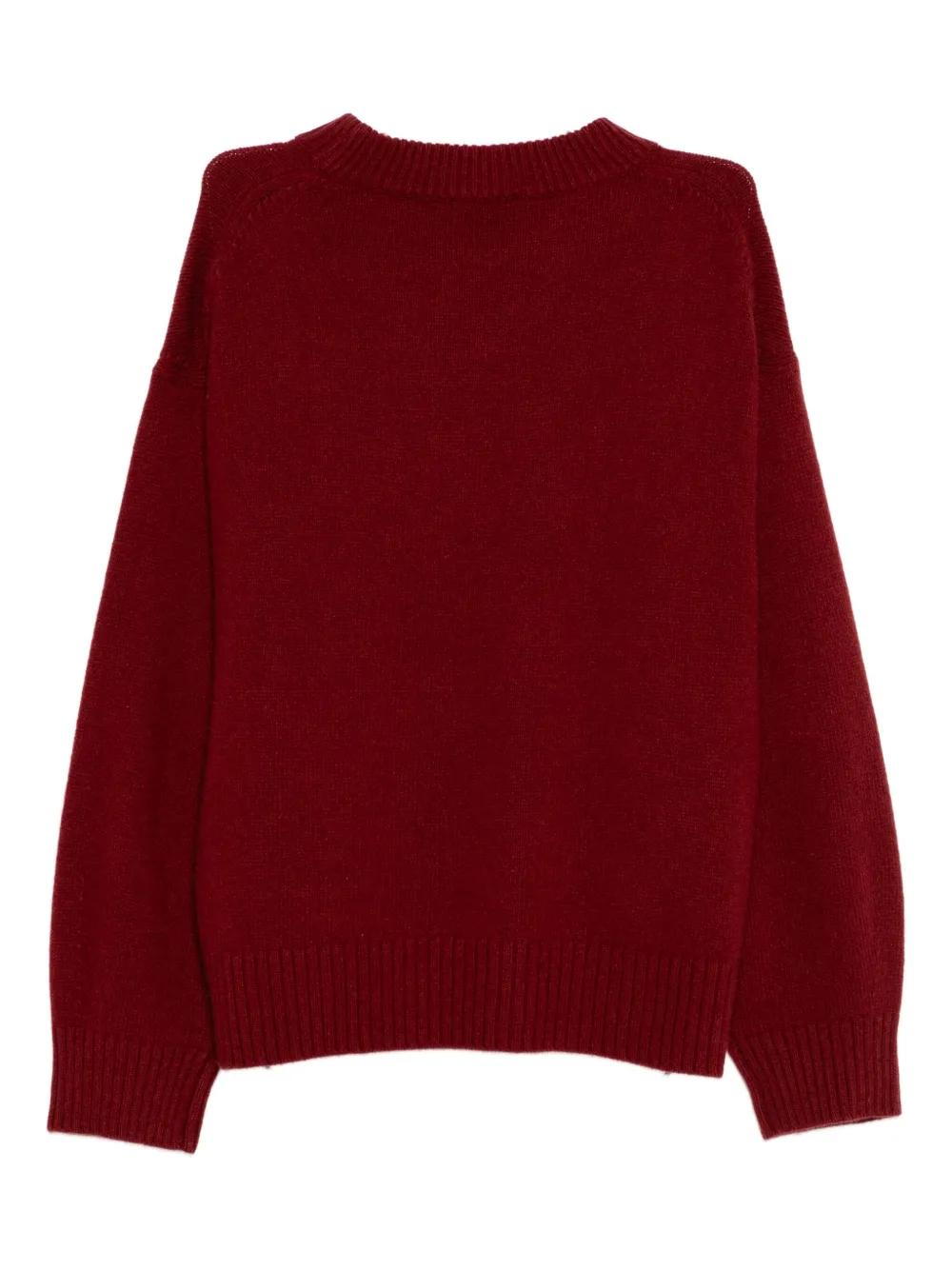 grey knit construction crew neck long sleeves ribbed trims stitching along the back