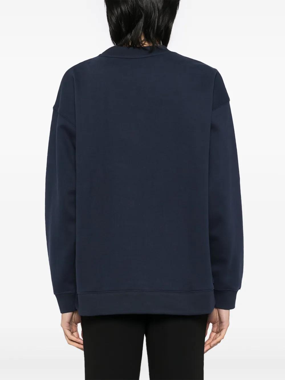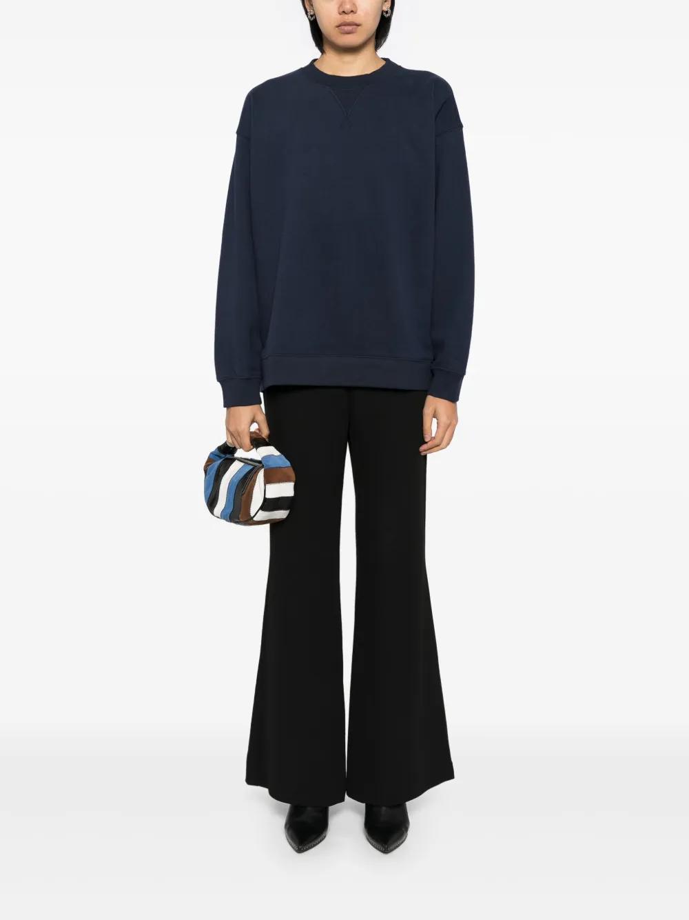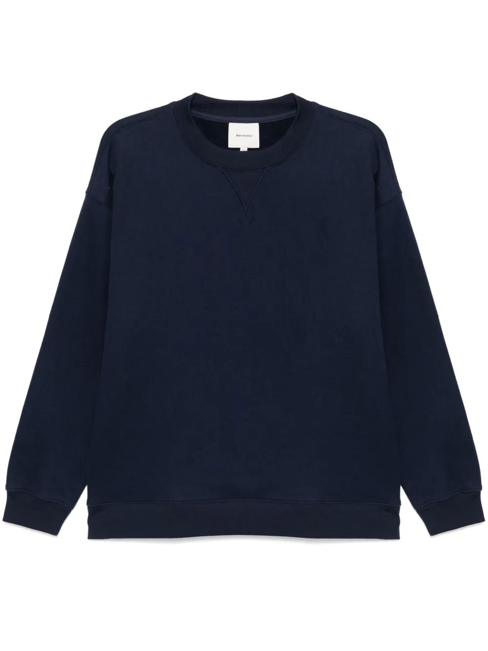 midnight blue organic cotton drop shoulder long sleeves crew neck ribbed cuffs and hem