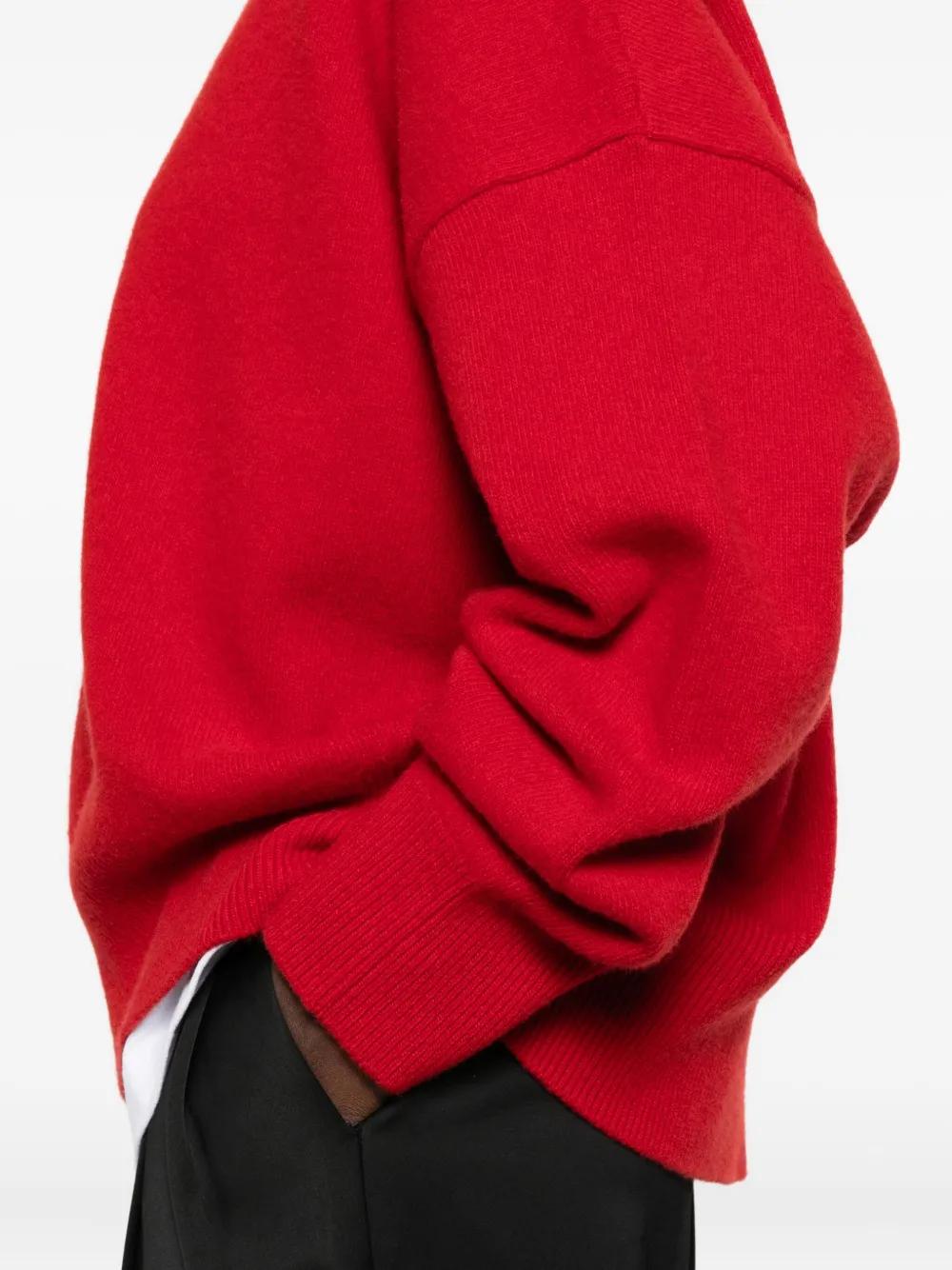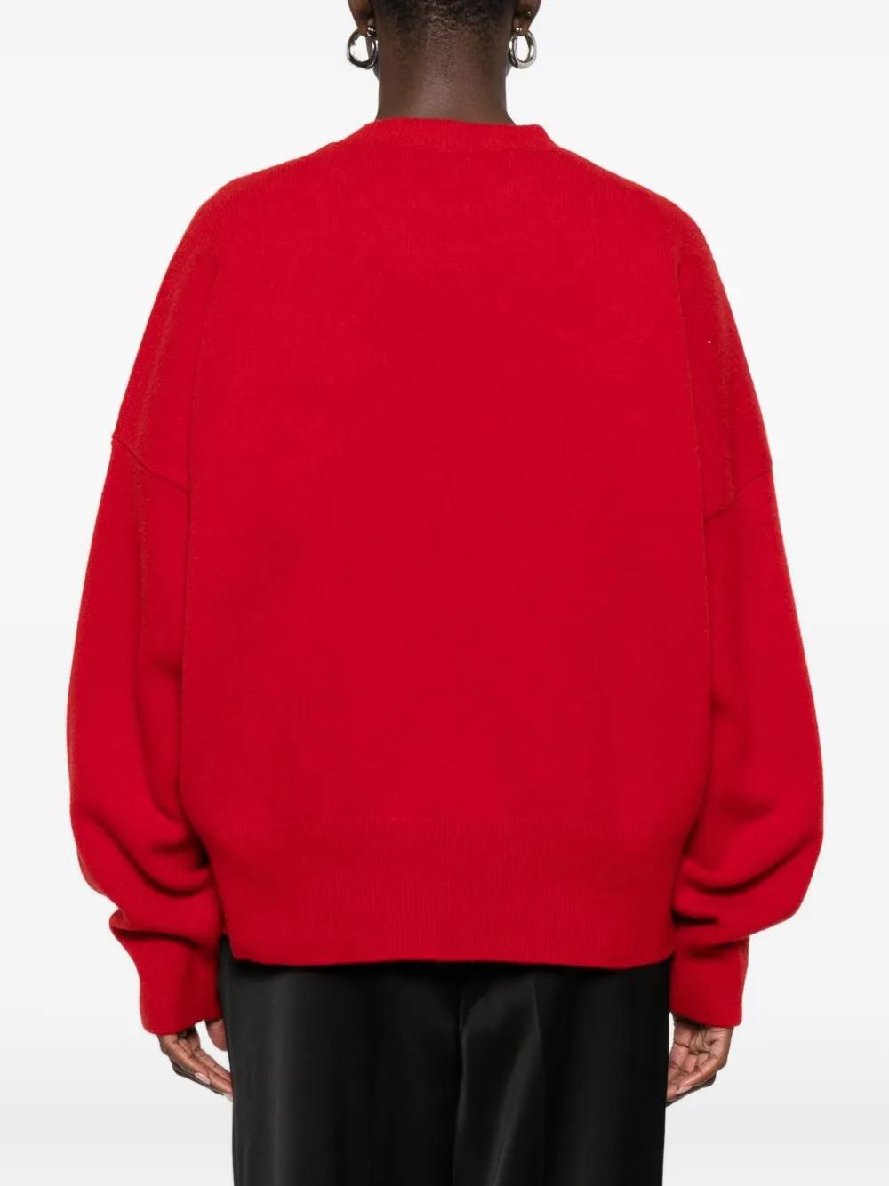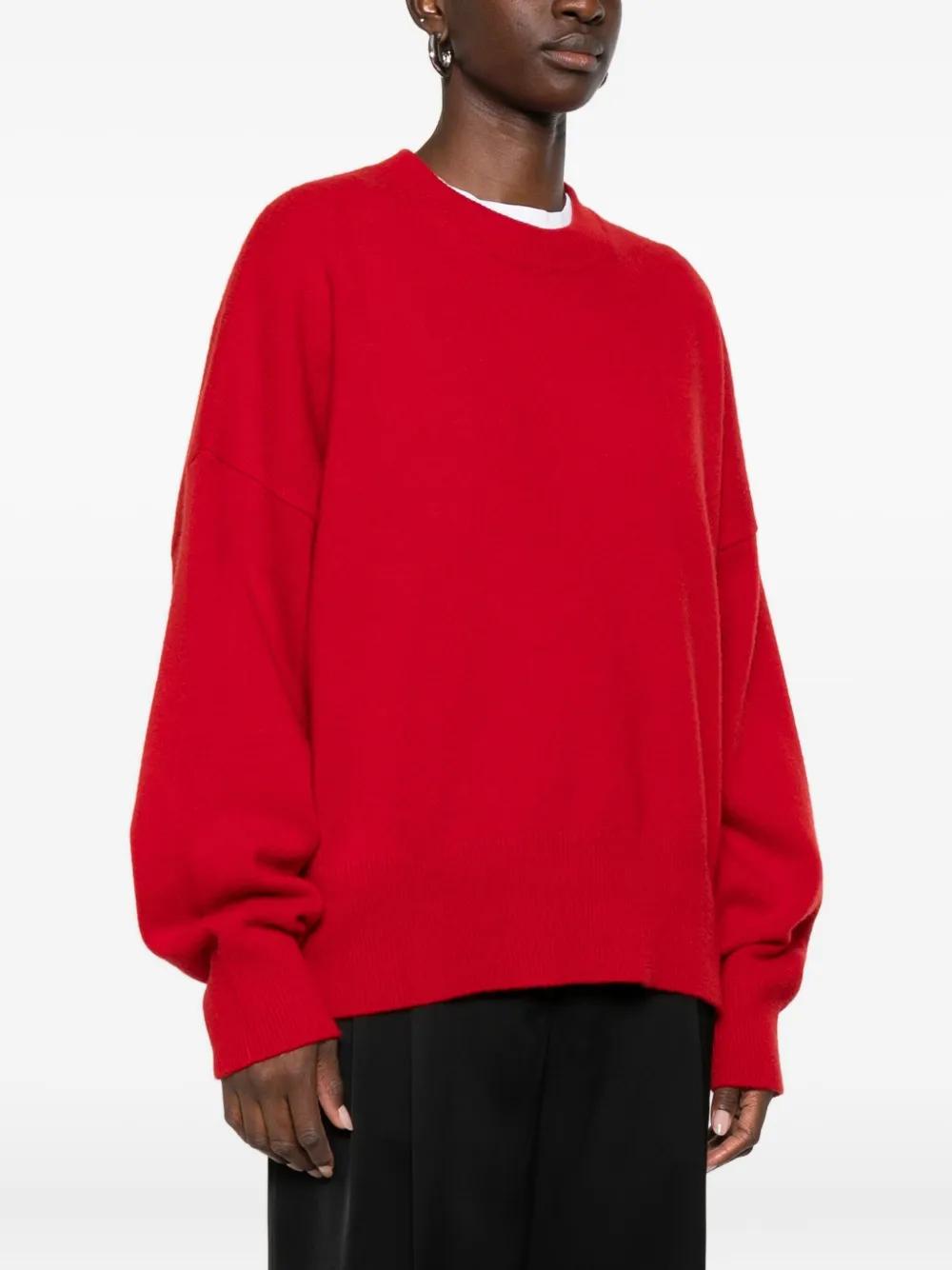 red brushed texture crew neck long sleeves ribbed hem and cuffs