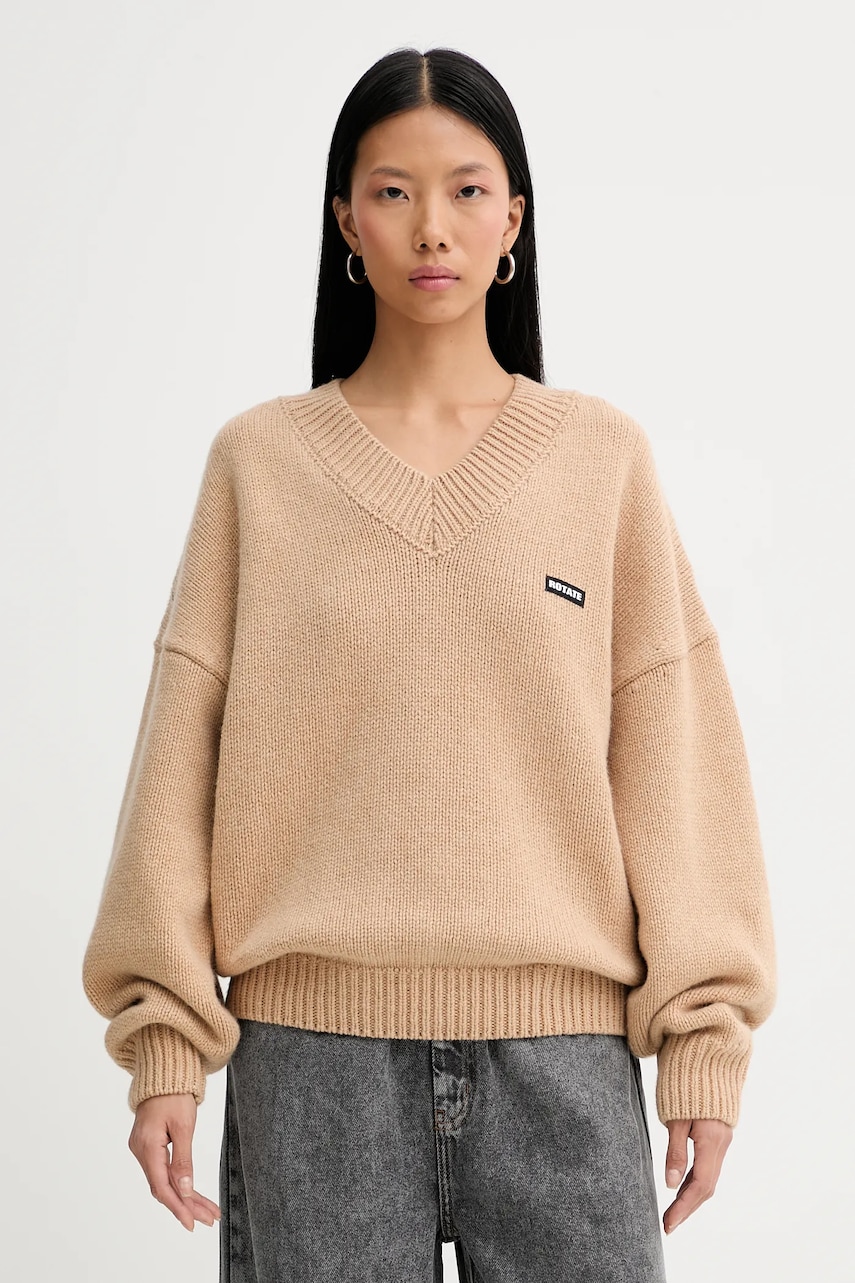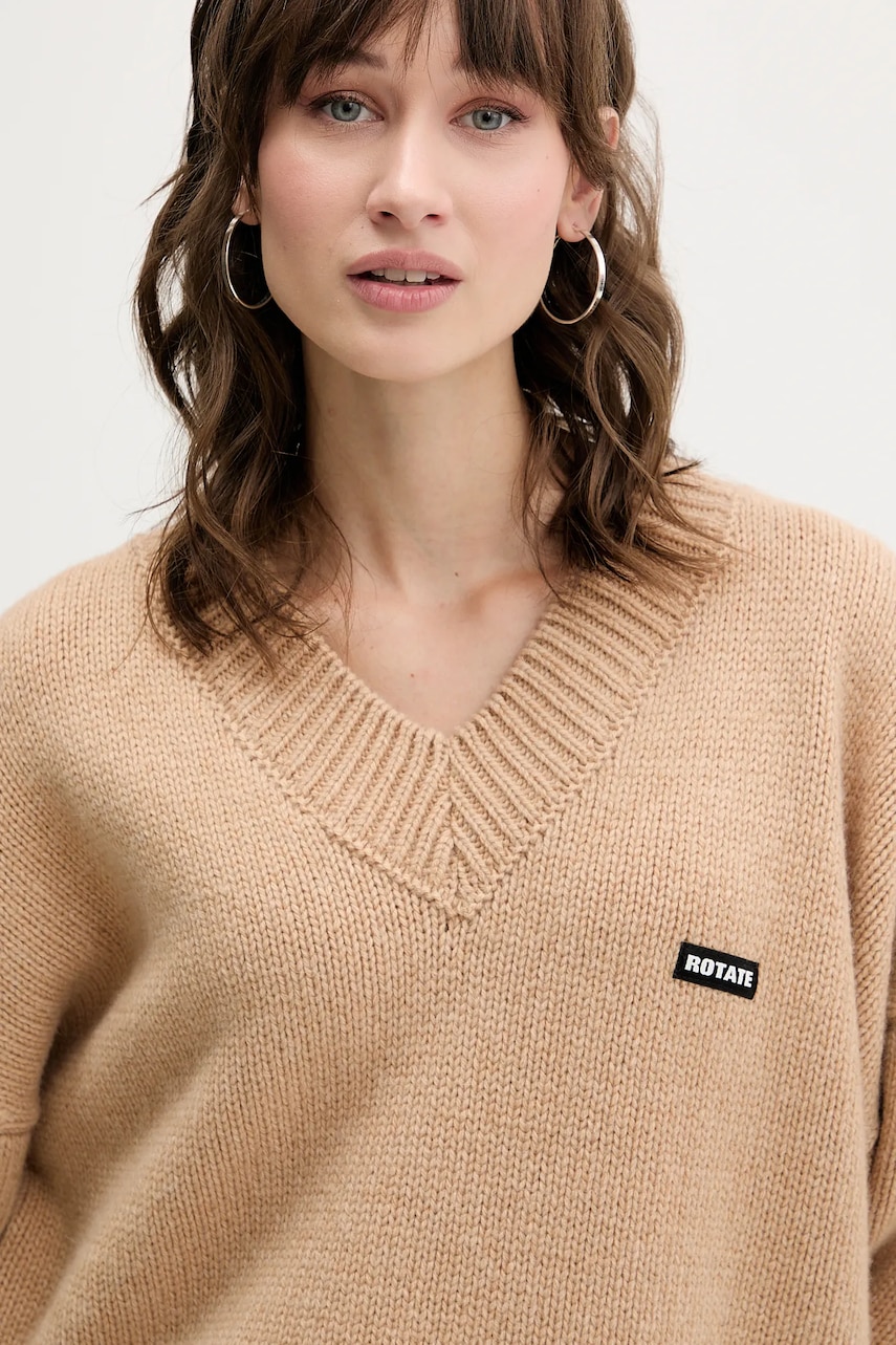 Rotate sweter wełniany kolor beżowy 1147631753