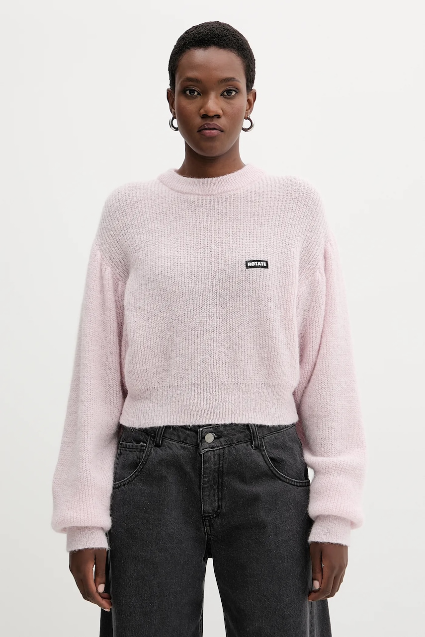 Rotate sweter z wełną damski kolor różowy lekki 114278191