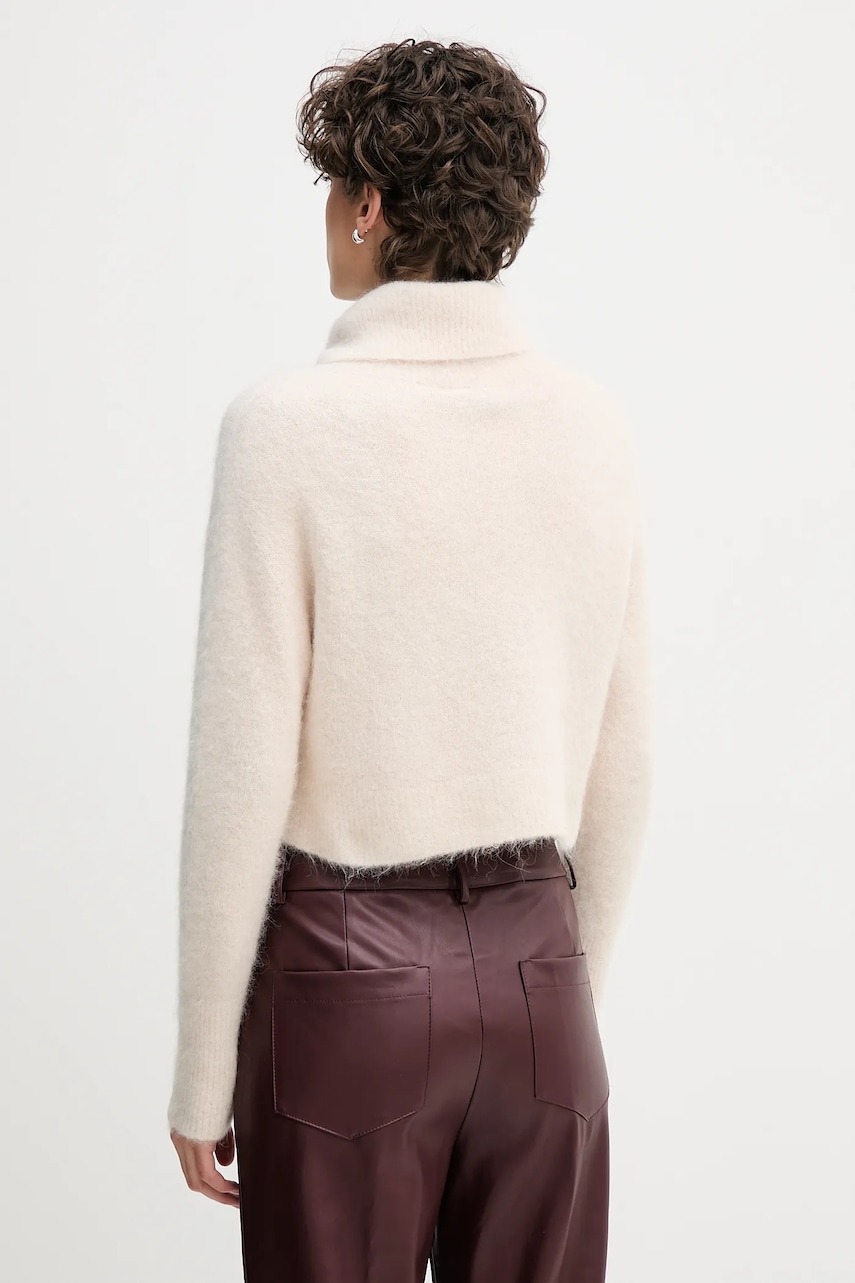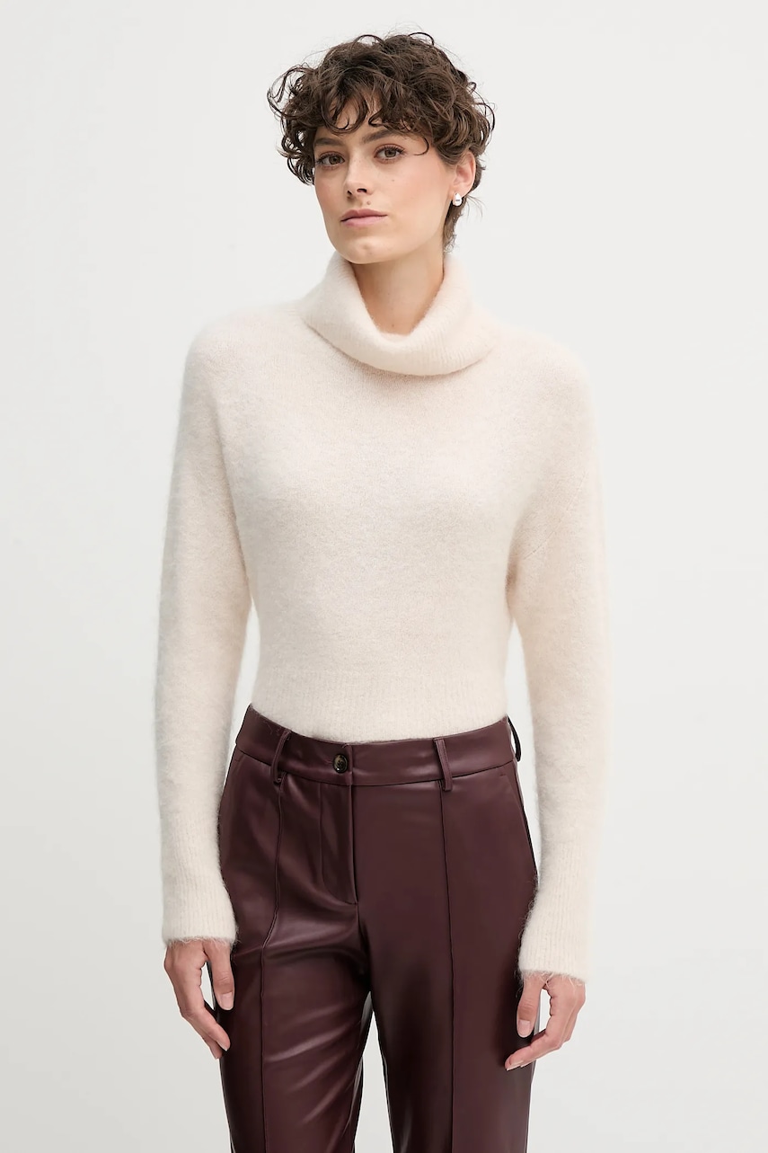 Sandro Ferrone sweter z dodatkiem alpaki damski kolor beżowy z golfem S9YBFNOME