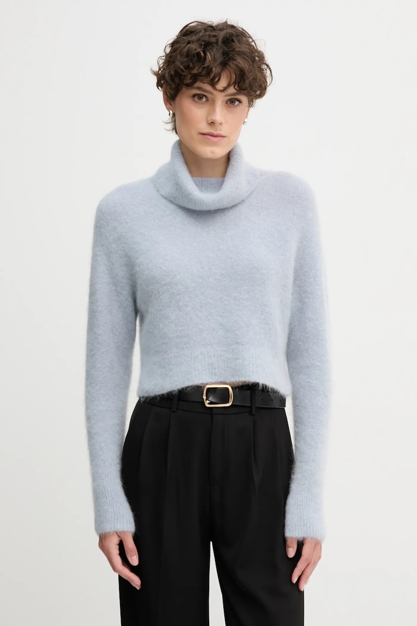 Sandro Ferrone sweter z dodatkiem alpaki damski kolor niebieski z golfem S9YBFNOME
