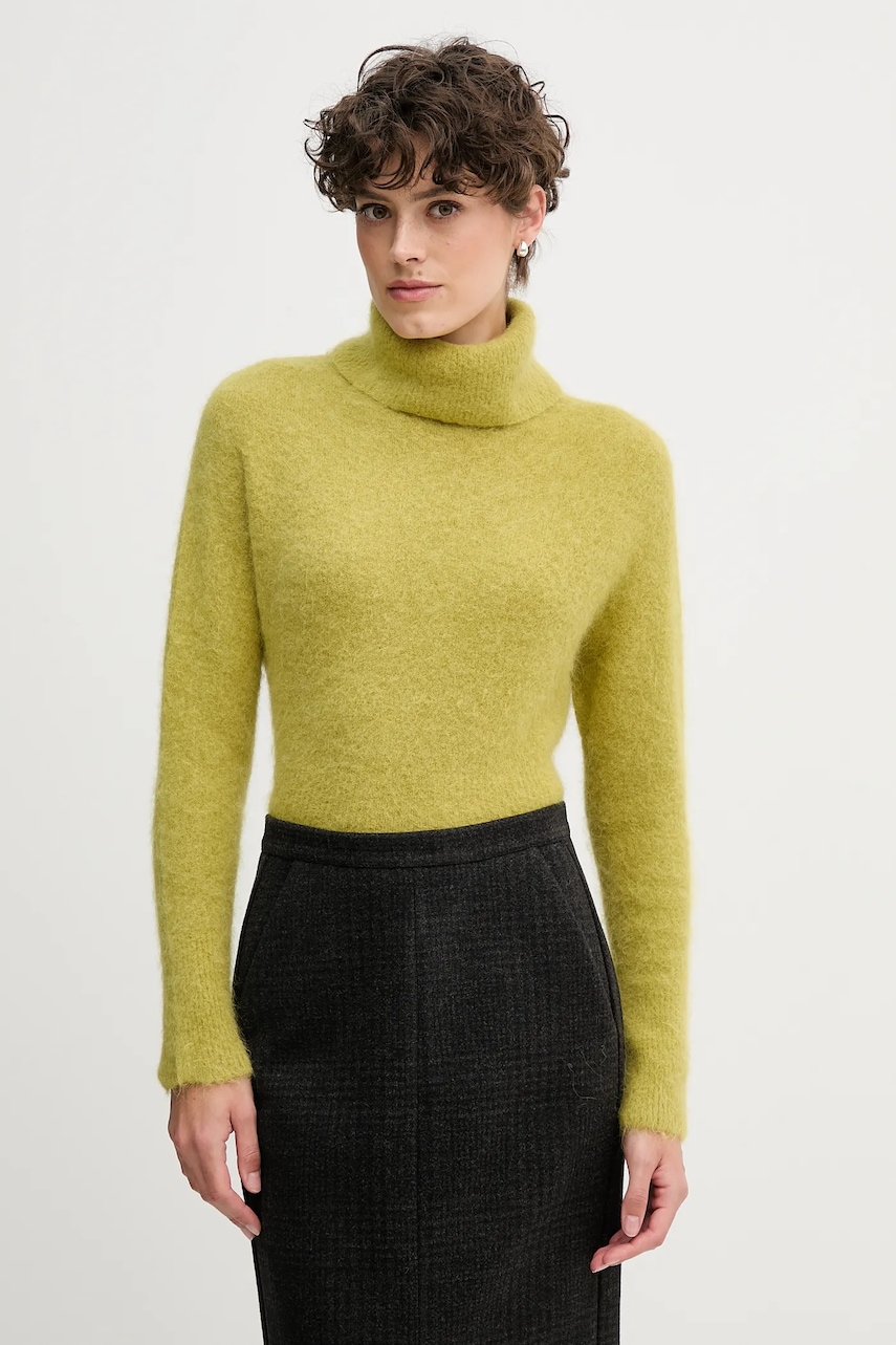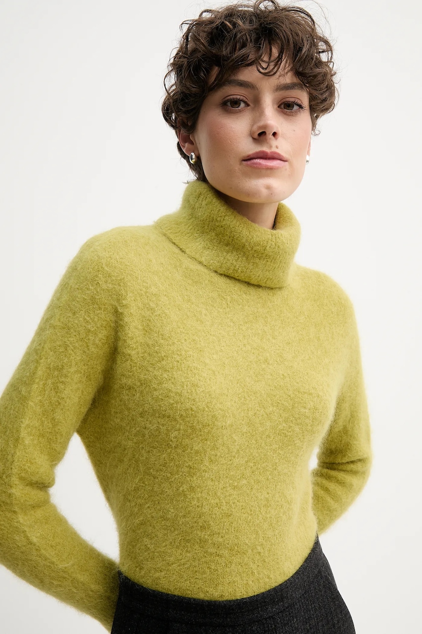 Sandro Ferrone sweter z dodatkiem alpaki damski kolor zielony z golfem S9YBFNOME