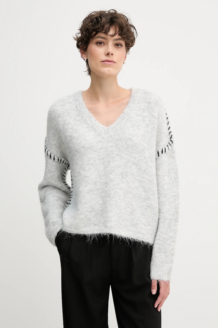 Sandro Ferrone sweter z domieszką wełny damski kolor szary S87YBFGAL