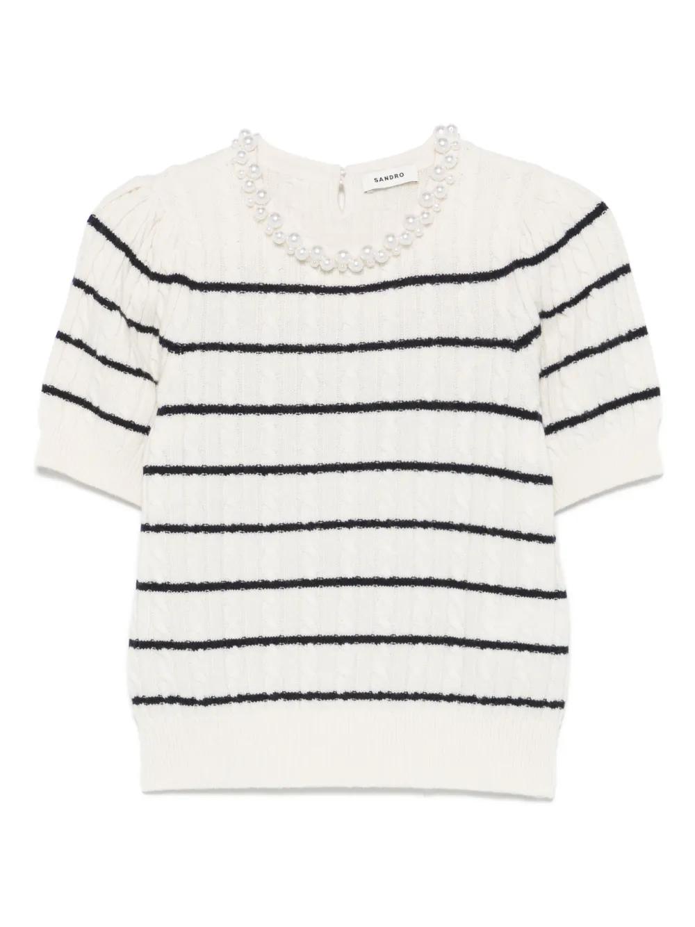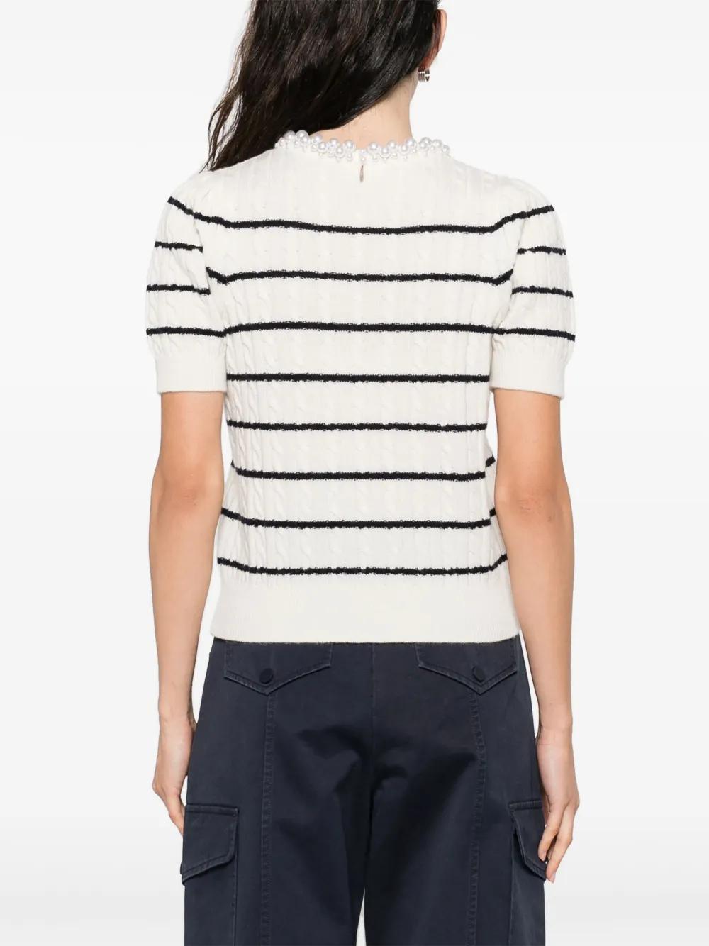 ecru pearl detailing ribbed trim crew neck short sleeves