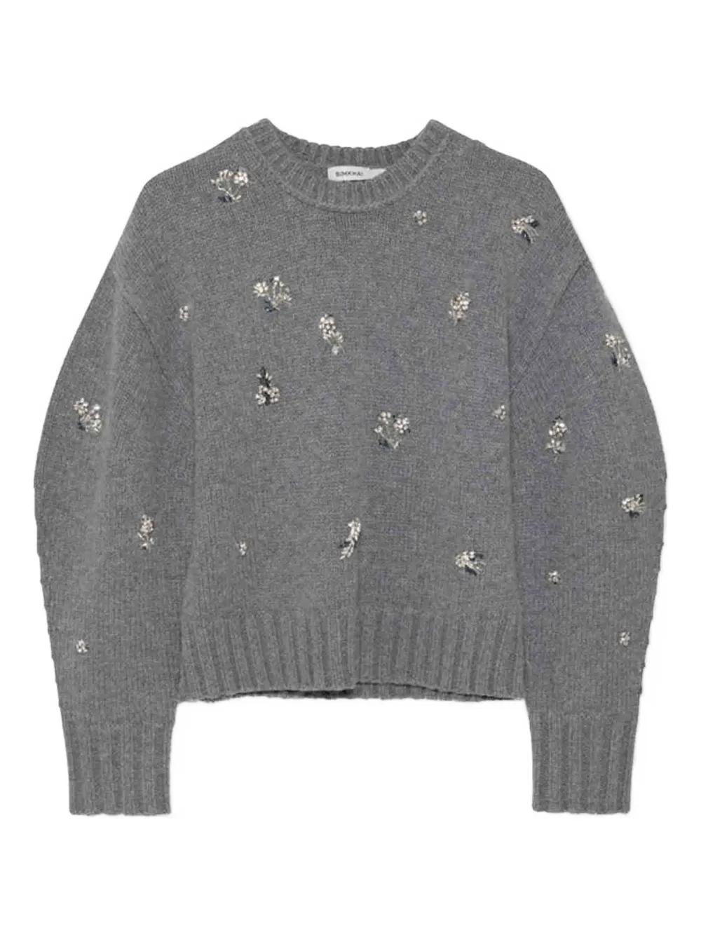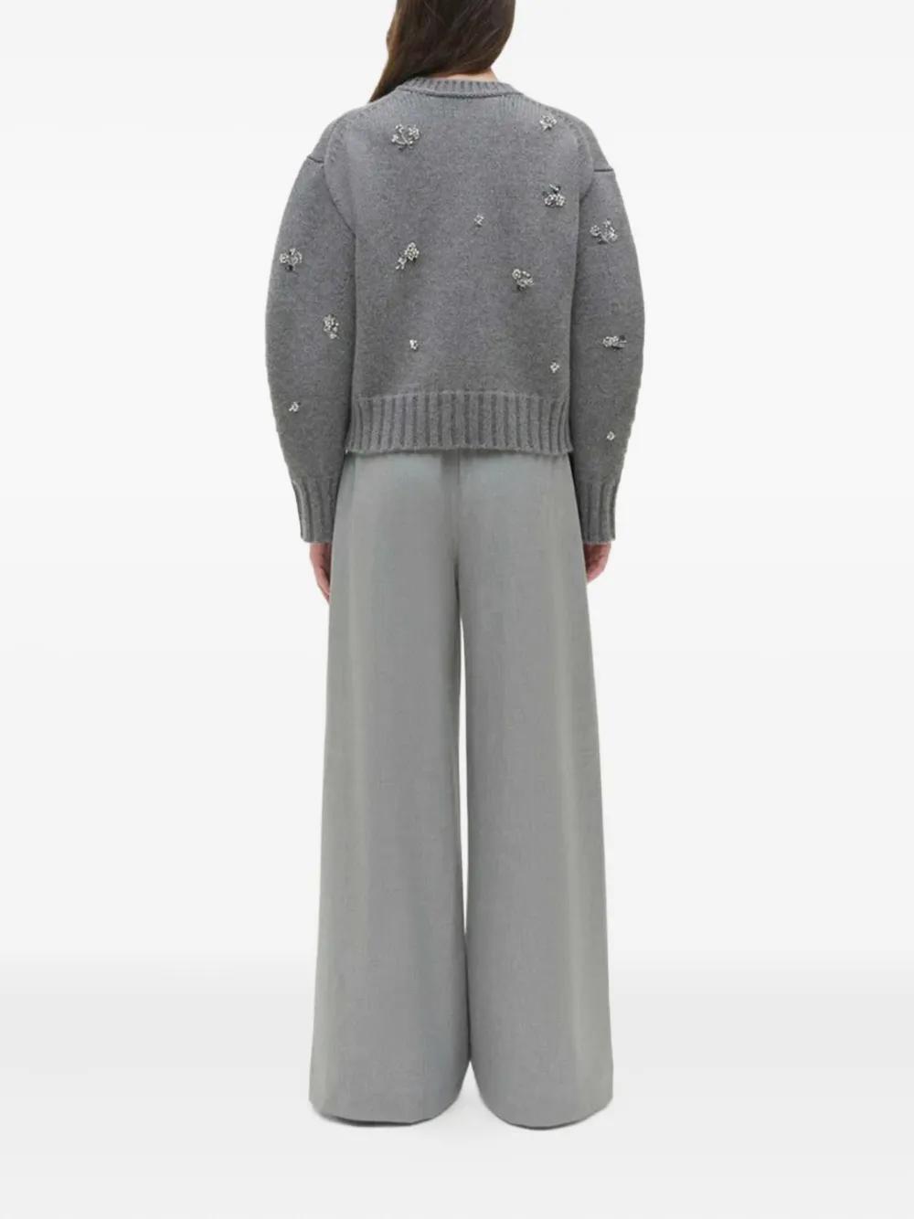 black crystal embellishment ribbed cuffs and hem voluminous sleeves round neck