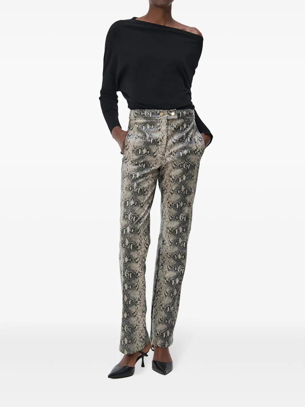 black wool blend knitted construction off-shoulder draped design asymmetric neck long sleeves straight hem