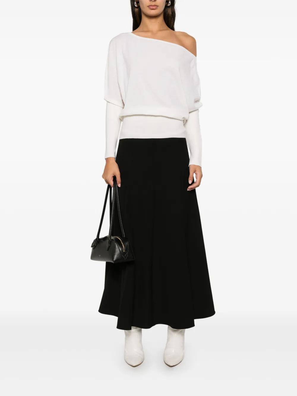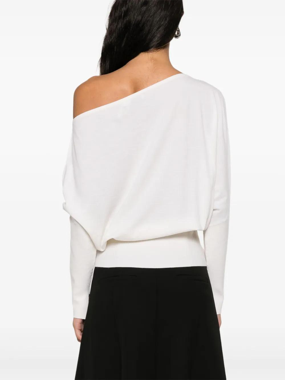 white wool blend ribbed knit boat neck batwing sleeves straight hem