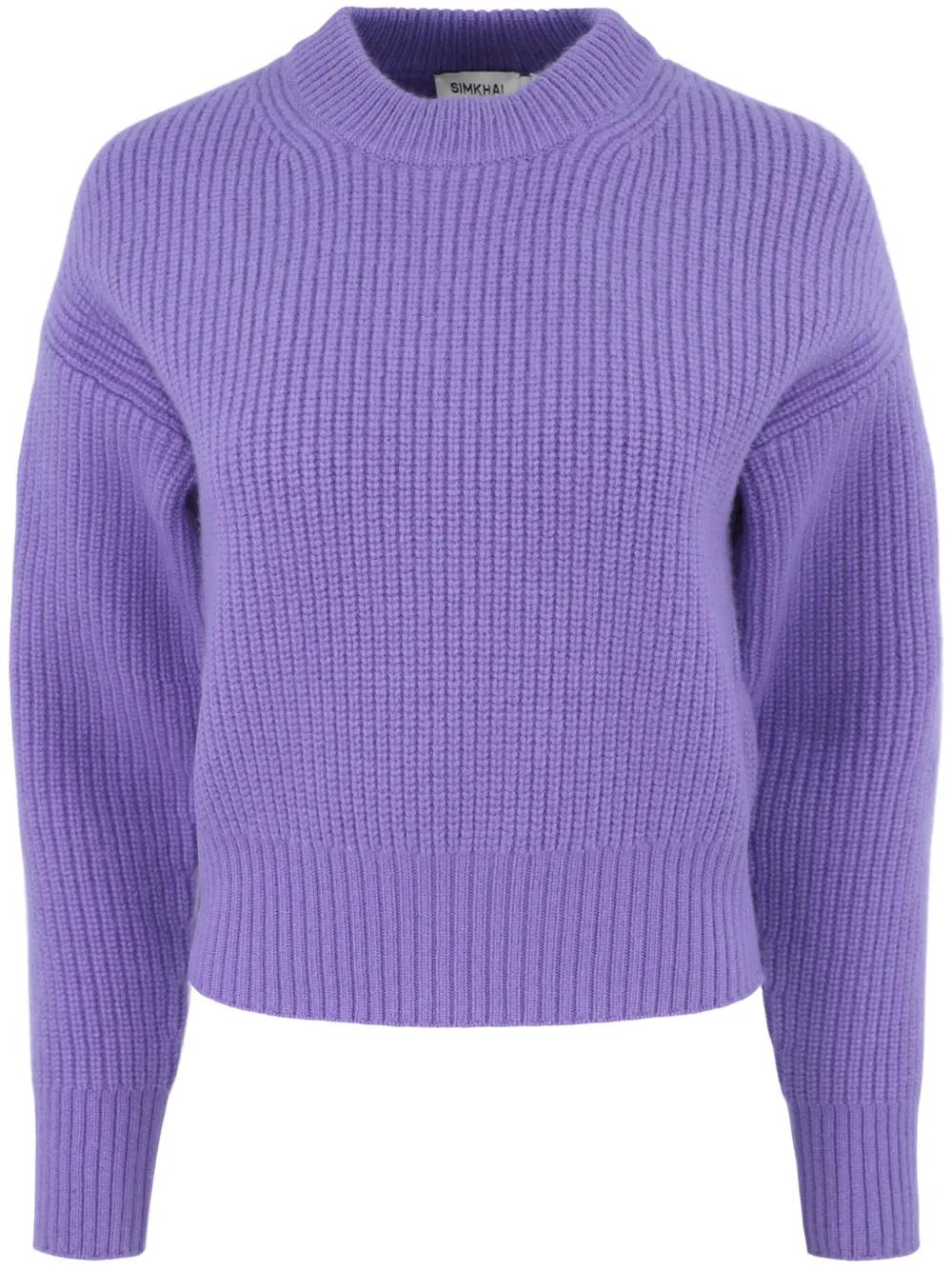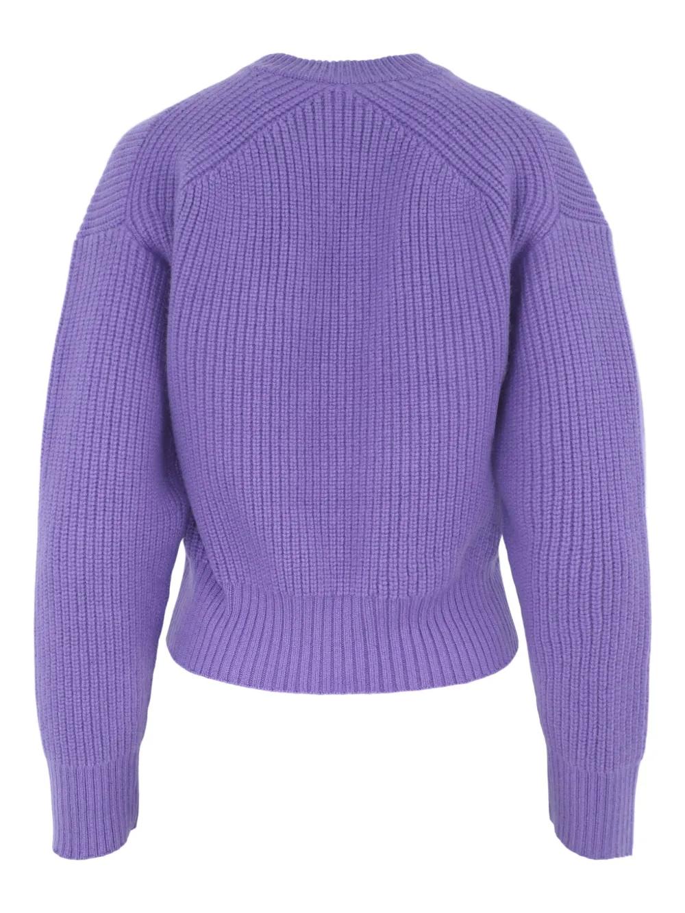 purple merino wool blend ribbed knit crew neck long sleeves straight hem