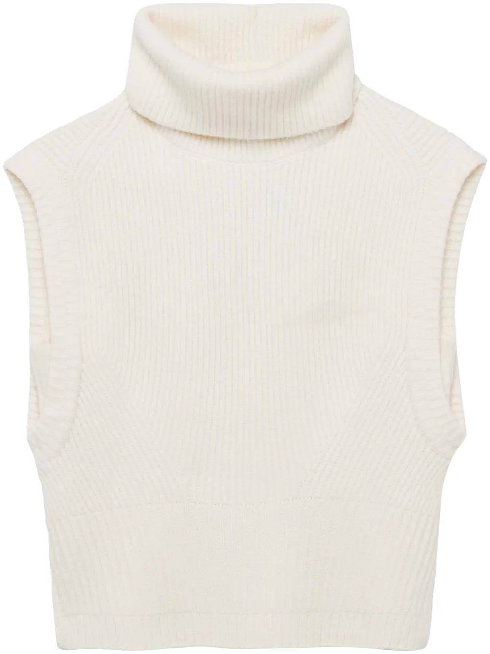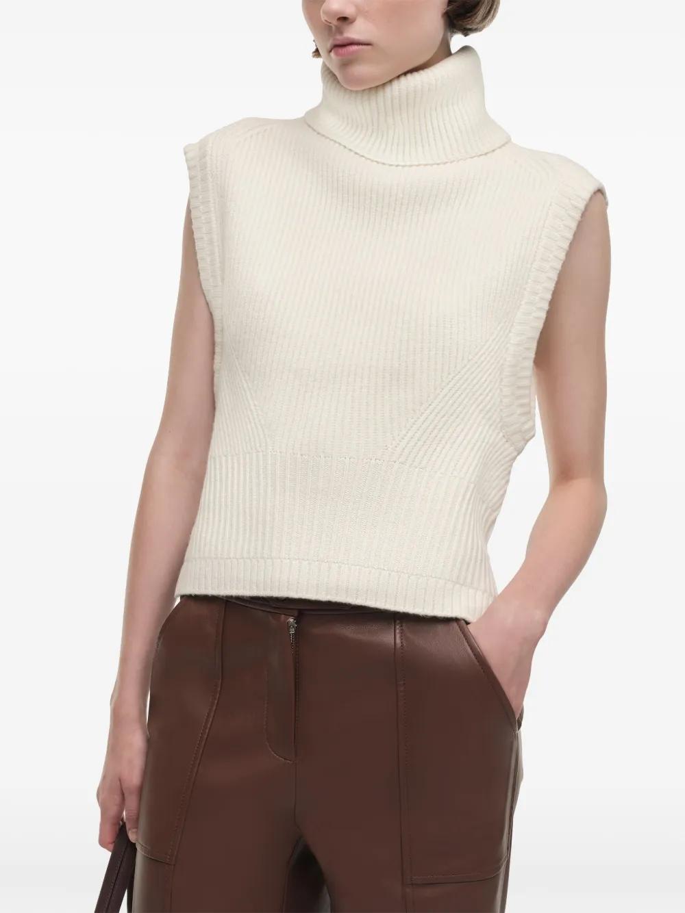 white wool-cashmere blend ribbed trim roll neck sleeveless