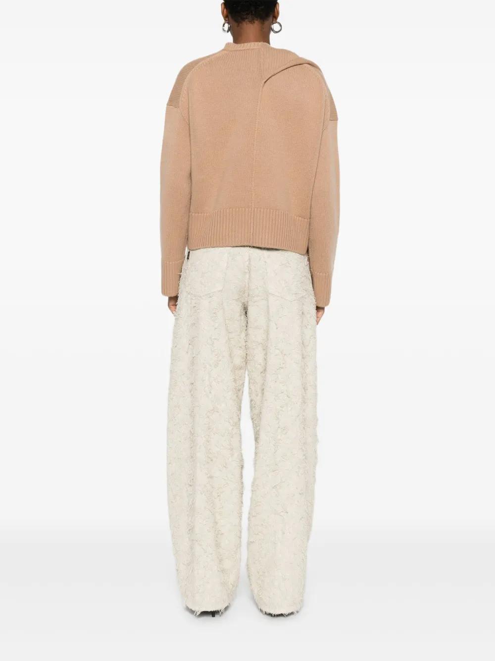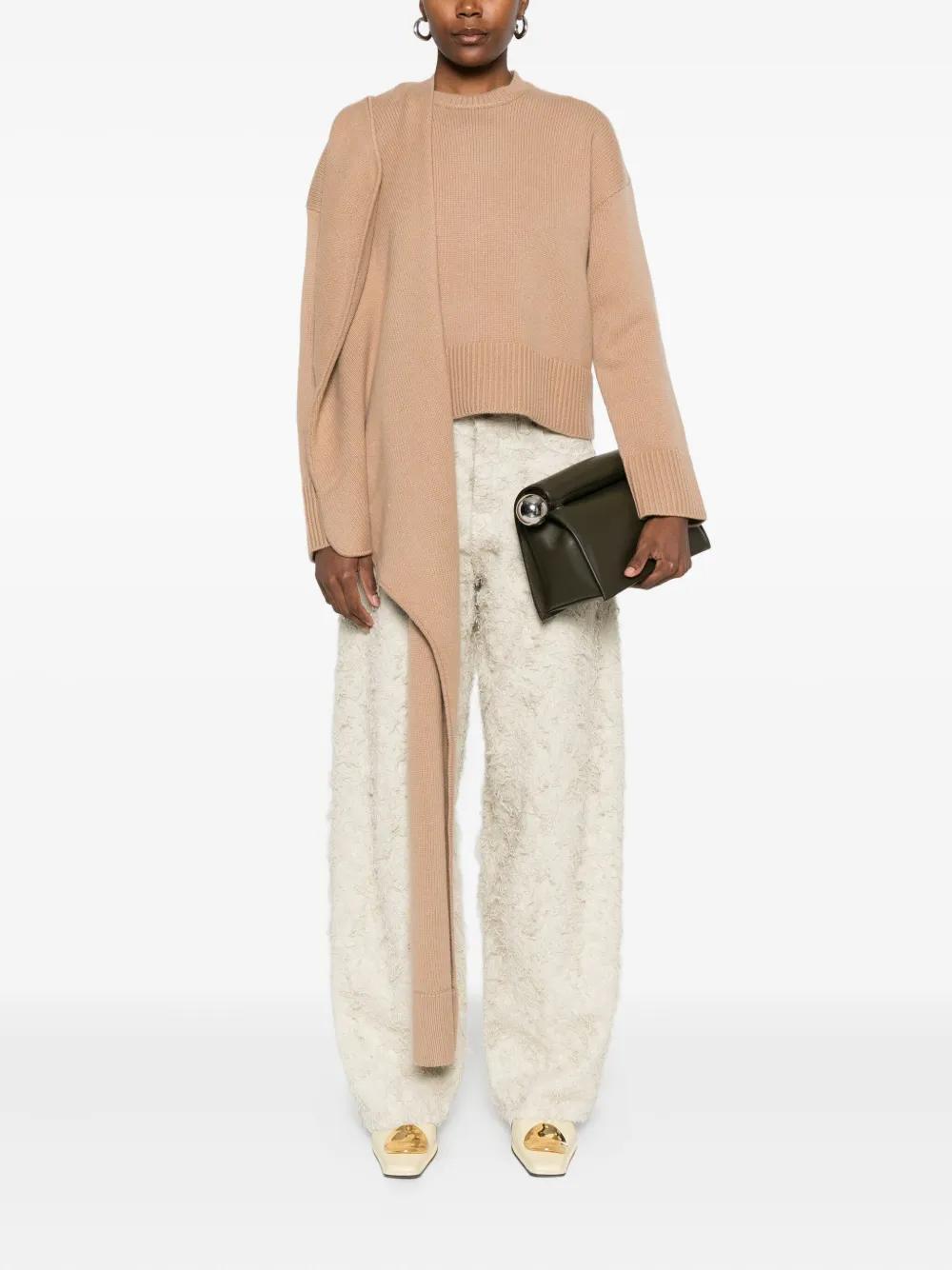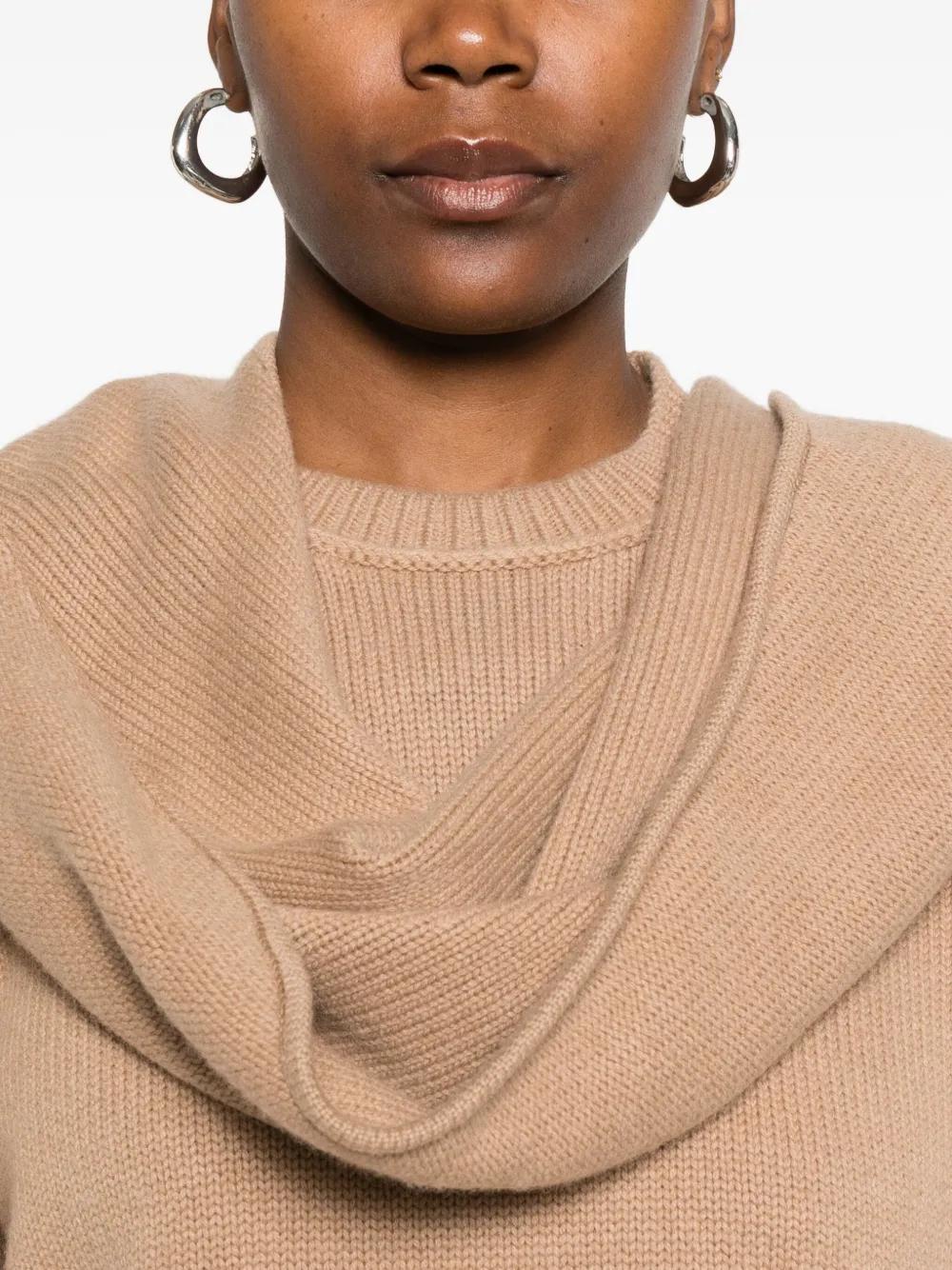camel wool-cashmere blend scarf detail long sleeves round neck