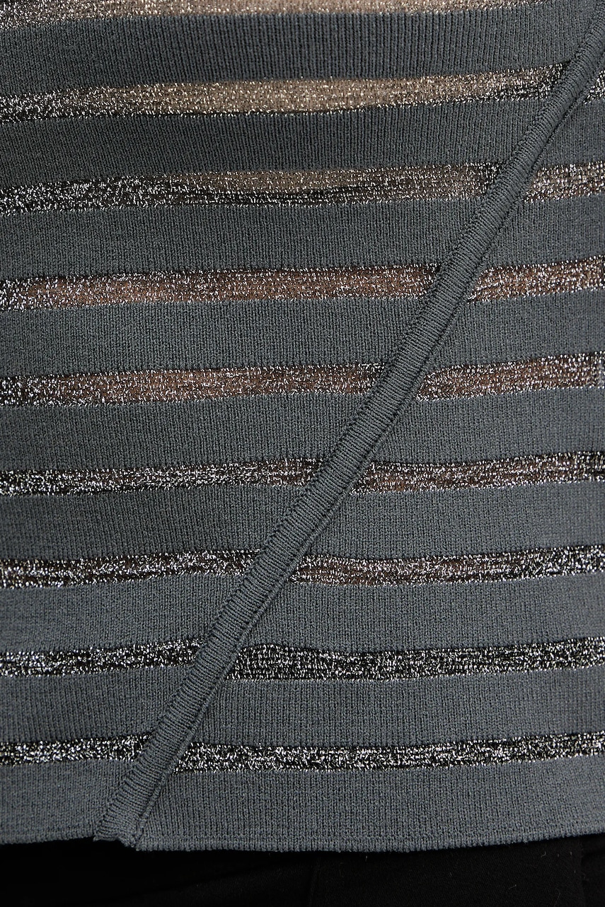 - Prosty, nie blokujący ruchów fason. - Model z półgolfem. - Materiał z metaliczną nicią. - Długość: 50 cm. - Szerokość pod pachami: 42 cm. - Wymiary podane dla rozmiaru: S.