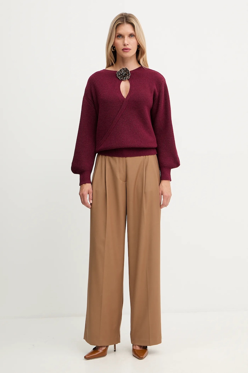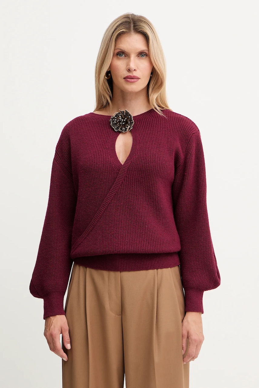 Simona Corsellini sweter z dodatkiem wełny damski kolor bordowy lekki A25CPMGG0401
