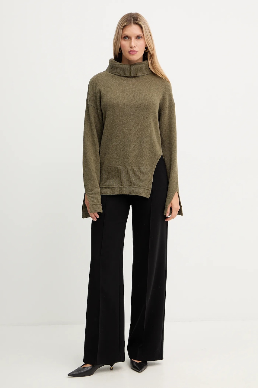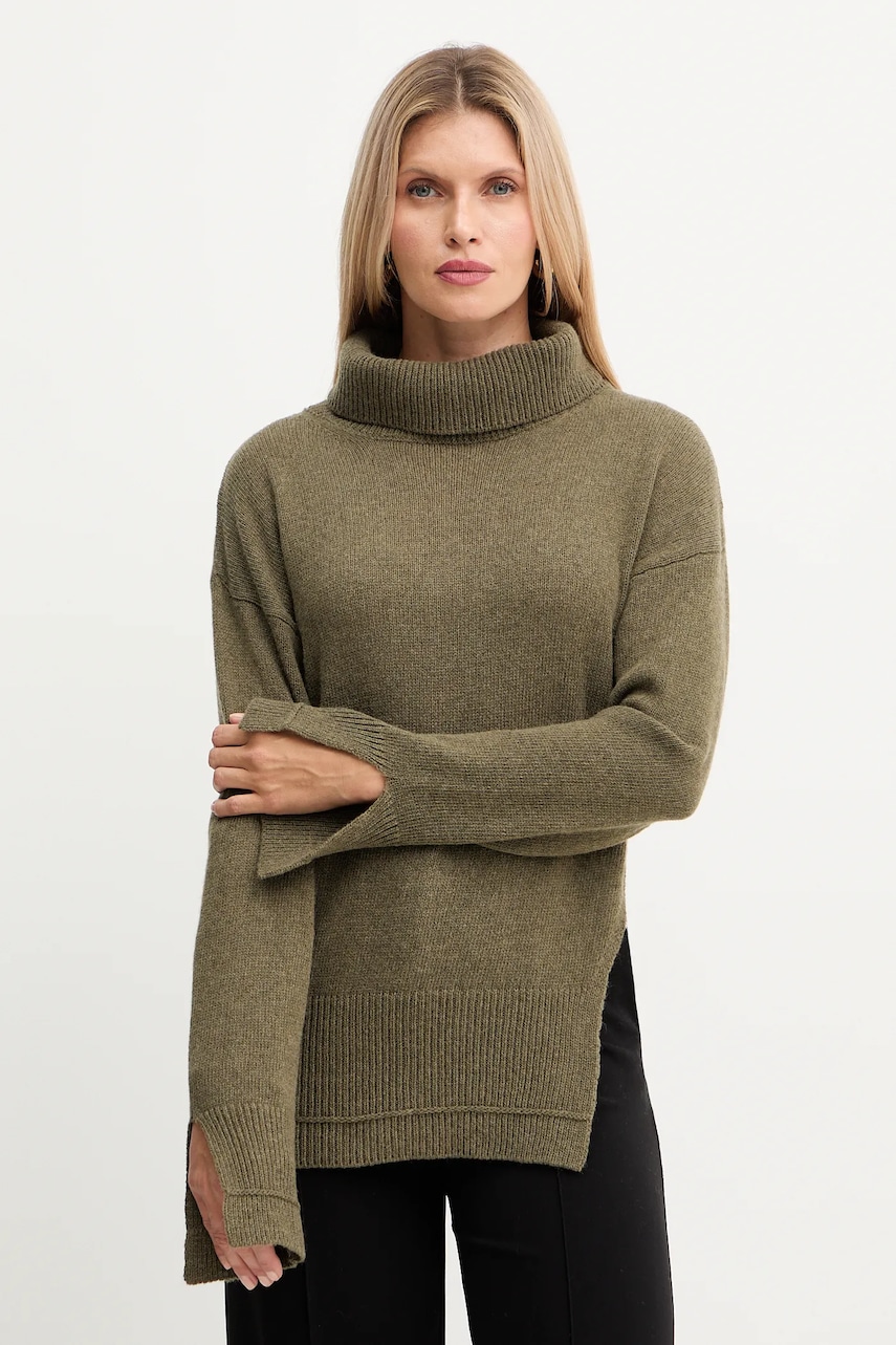 Simona Corsellini sweter z dodatkiem wełny damski kolor zielony lekki z golfem A25CPMGP08S1