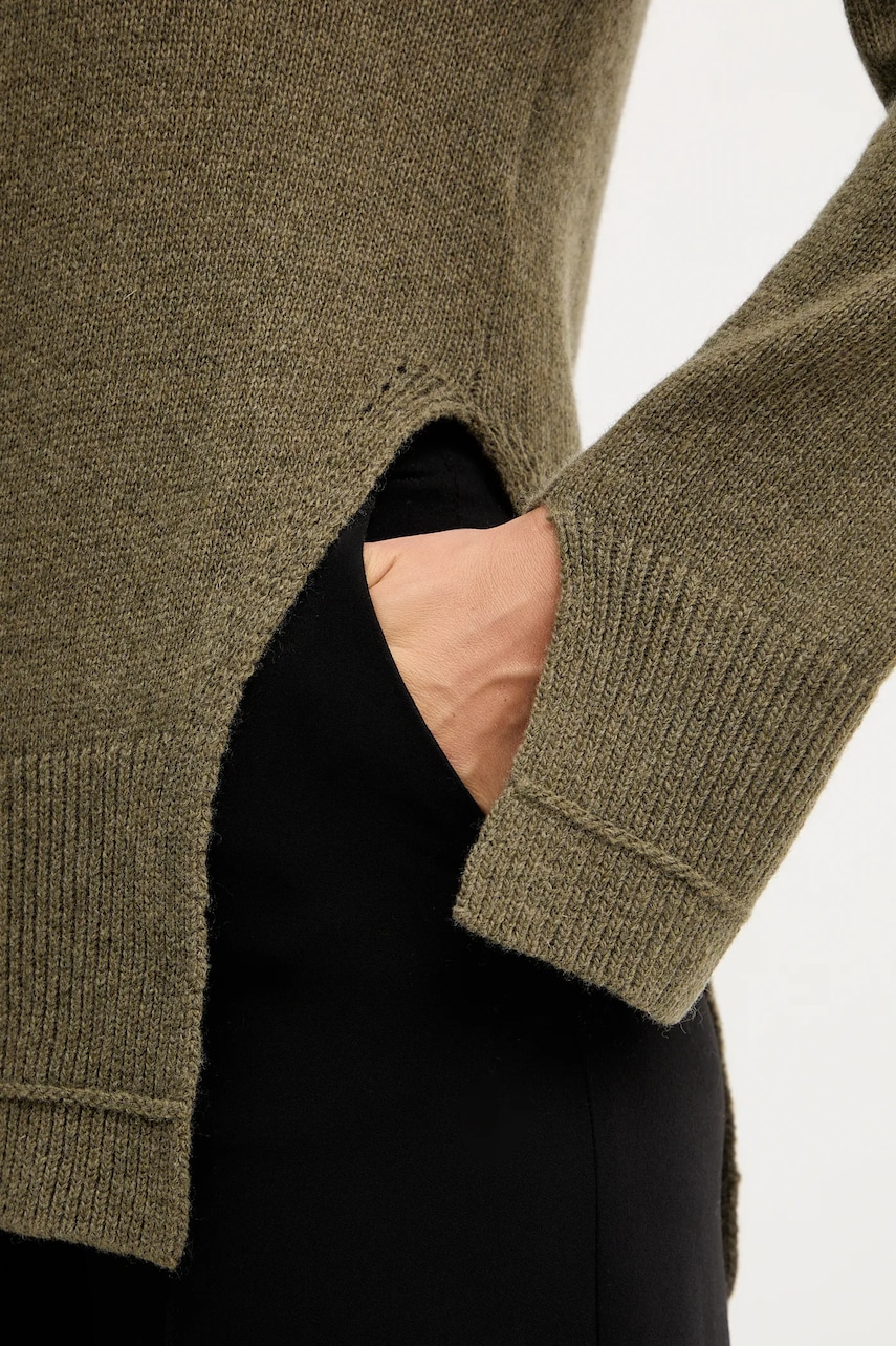 - Luźny krój zapewniający pełną swobodę ruchów. - Krój rękawa z obniżoną linią ramion nie ogranicza mobilności. - Model z golfem. - Efektowne rozcięcie. - Cienka, elastyczna dzianina. - Długość rękawa(mierzona od dekoltu): 89,5 cm. - Długość: 73,5 cm. - Szerokość pod pachami: 51 cm. - Wymiary podane dla rozmiaru: S.