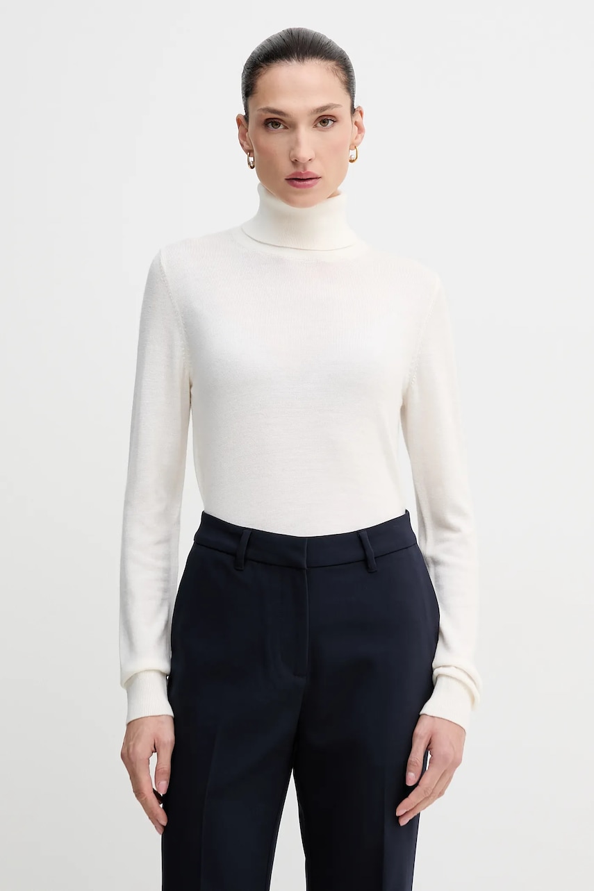 Sisley sweter damski kolor beżowy lekki z golfem 11BAM201C