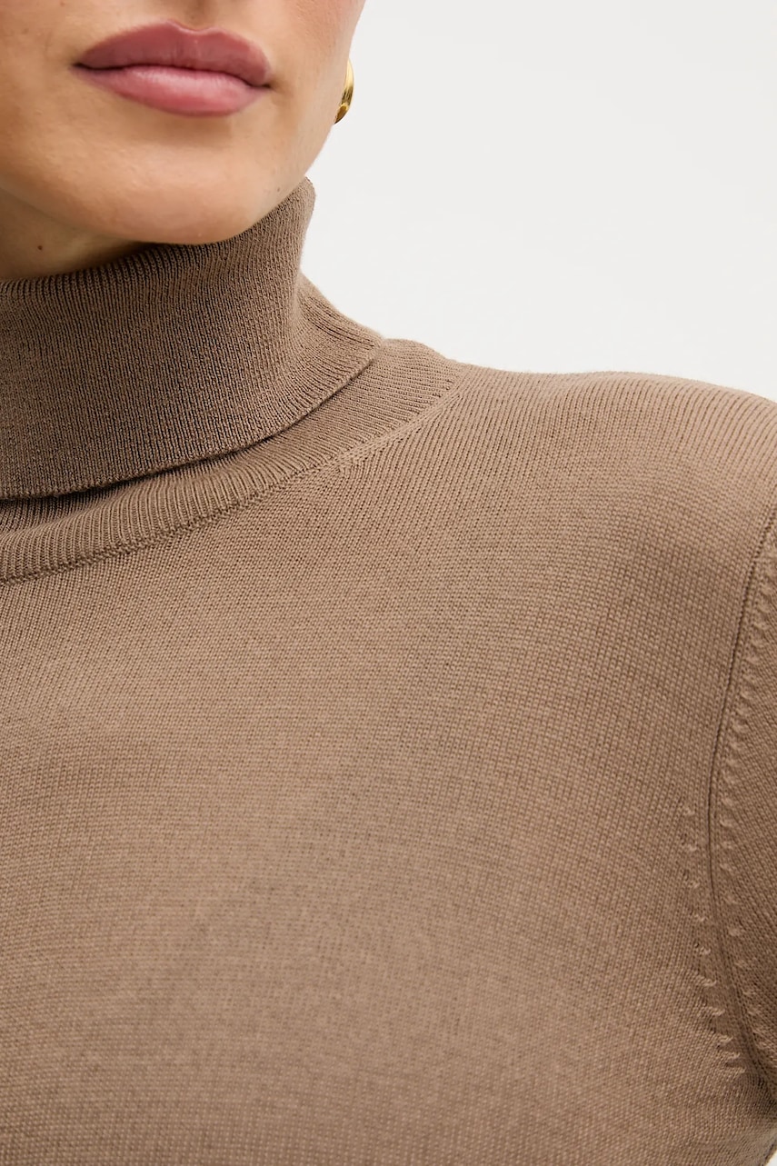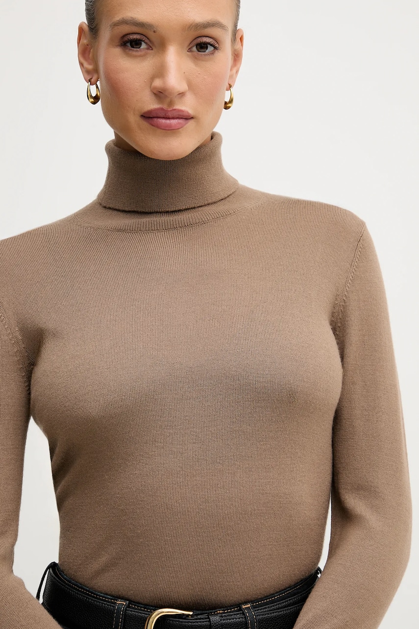 Sisley sweter damski kolor brązowy lekki z golfem 11BAM201C