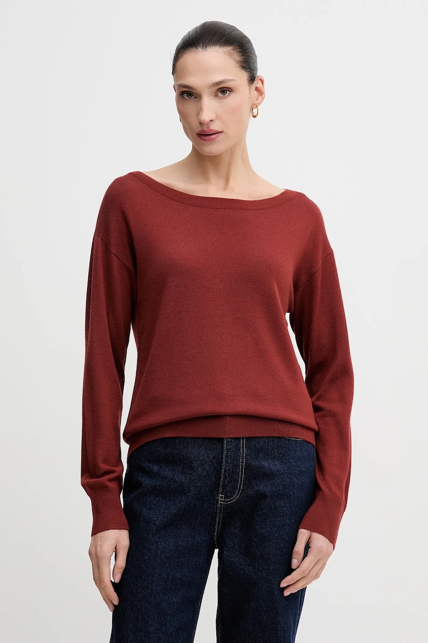 Sisley sweter wełniany damski kolor pomarańczowy lekki 11BAM1A48