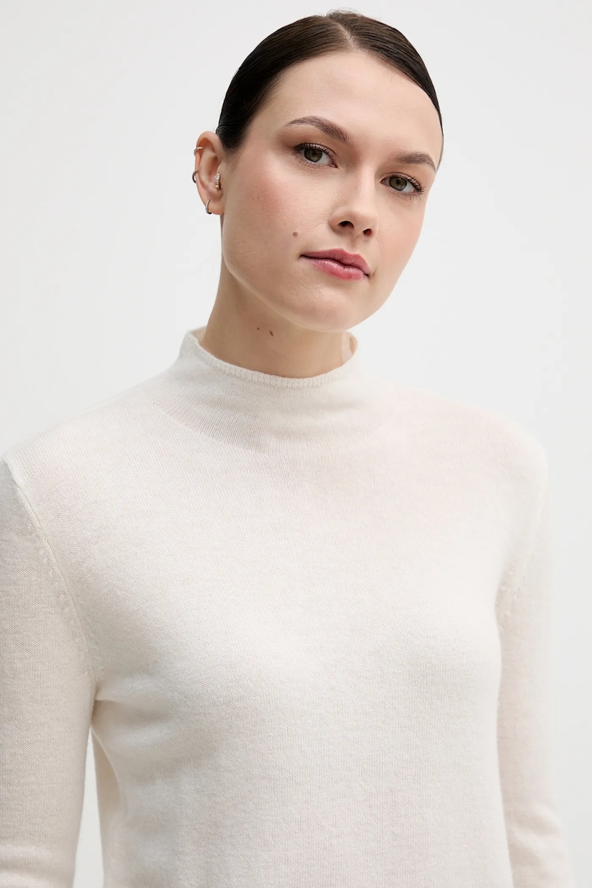 Sisley sweter z dodatkiem wełny damski kolor beżowy lekki z półgolfem 122WL202B