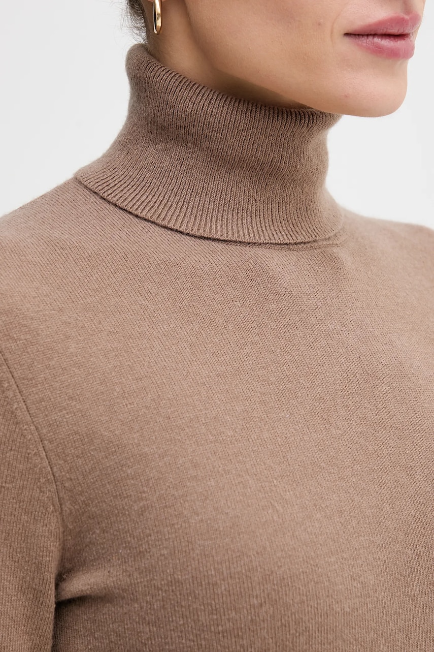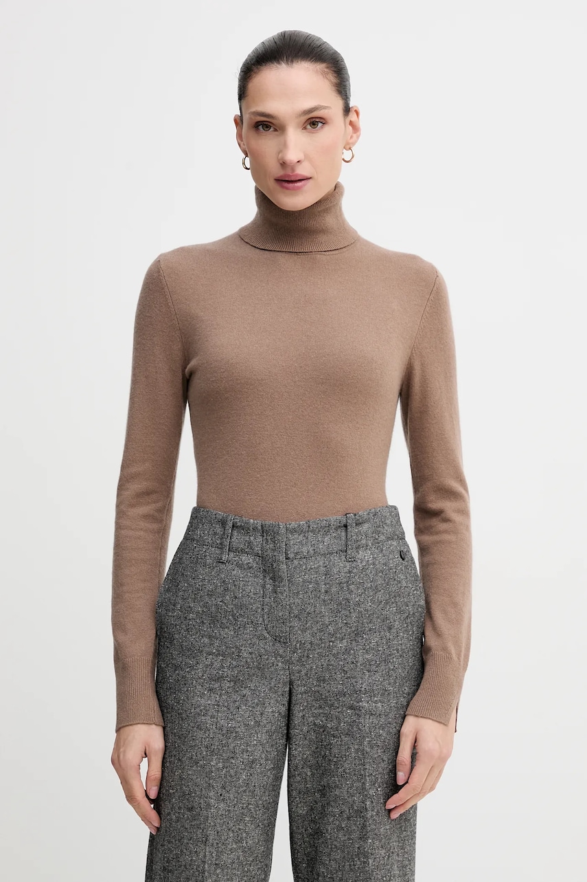 Sisley sweter z domieszką wełny damski kolor brązowy lekki z golfem 102HM2174