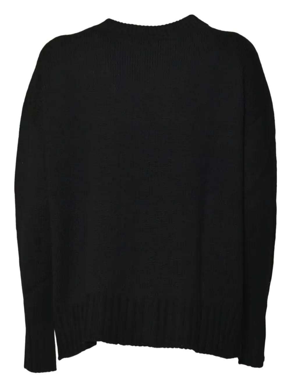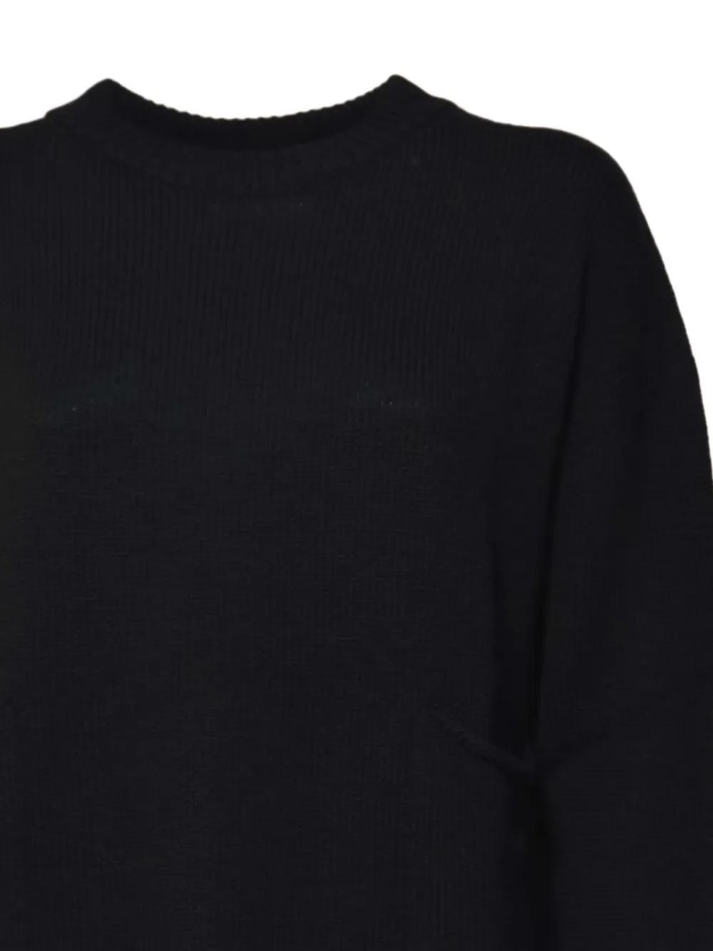 black crew neck long sleeves ribbed knit straight hem panel detail