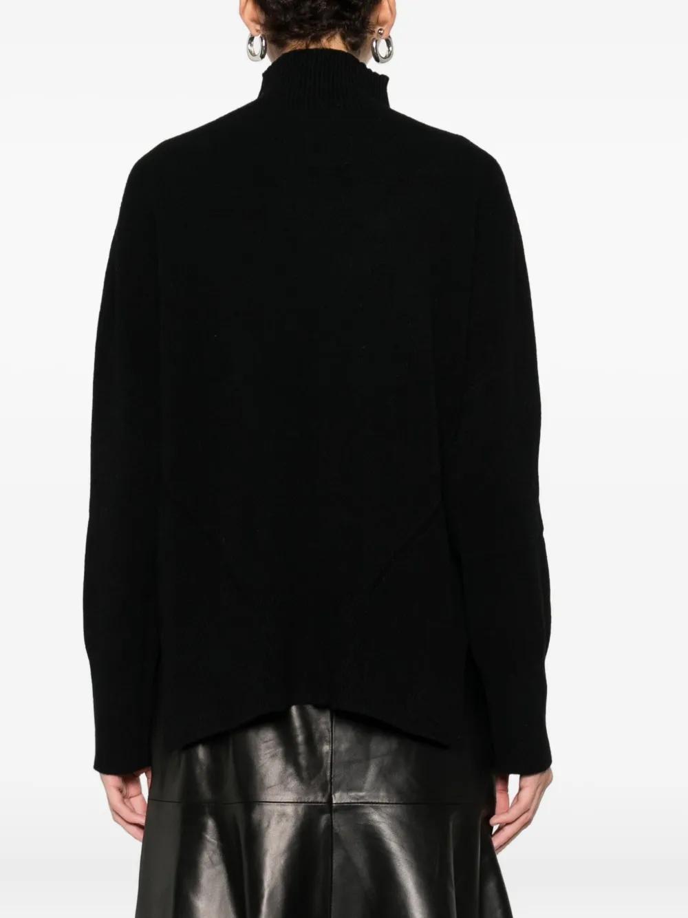 black merino wool intarsia knit roll neck long sleeves ribbed cuffs and hem