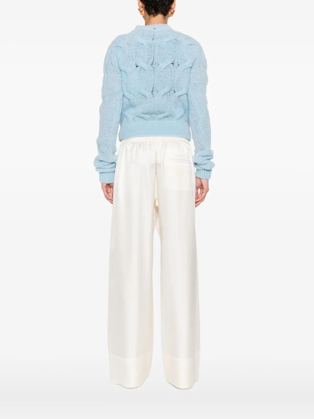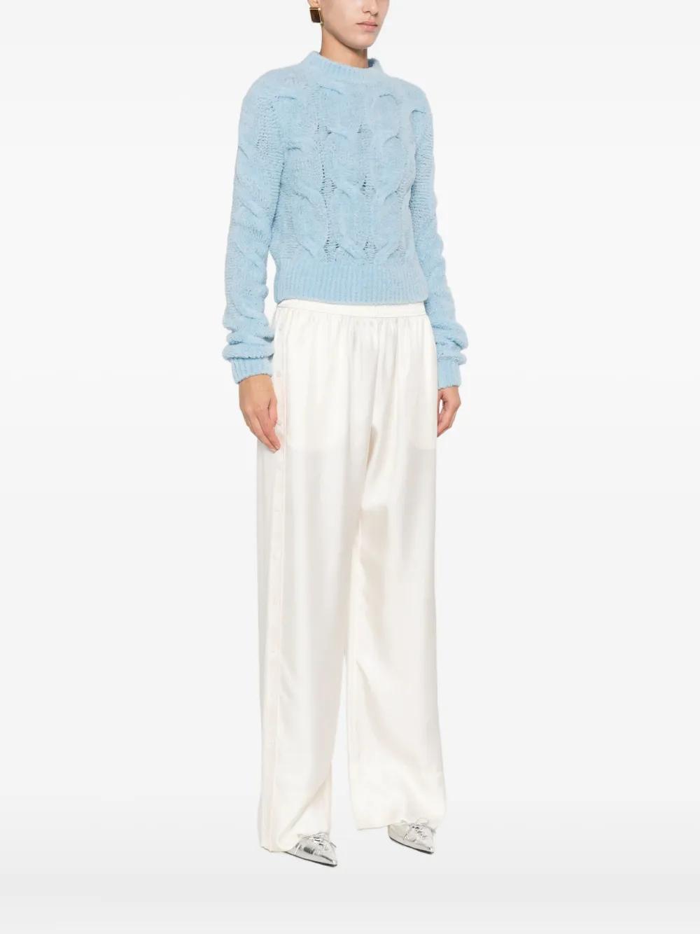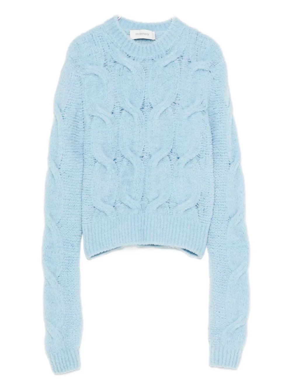 light blue cable-knit crew neck long sleeves ribbed cuffs and hem