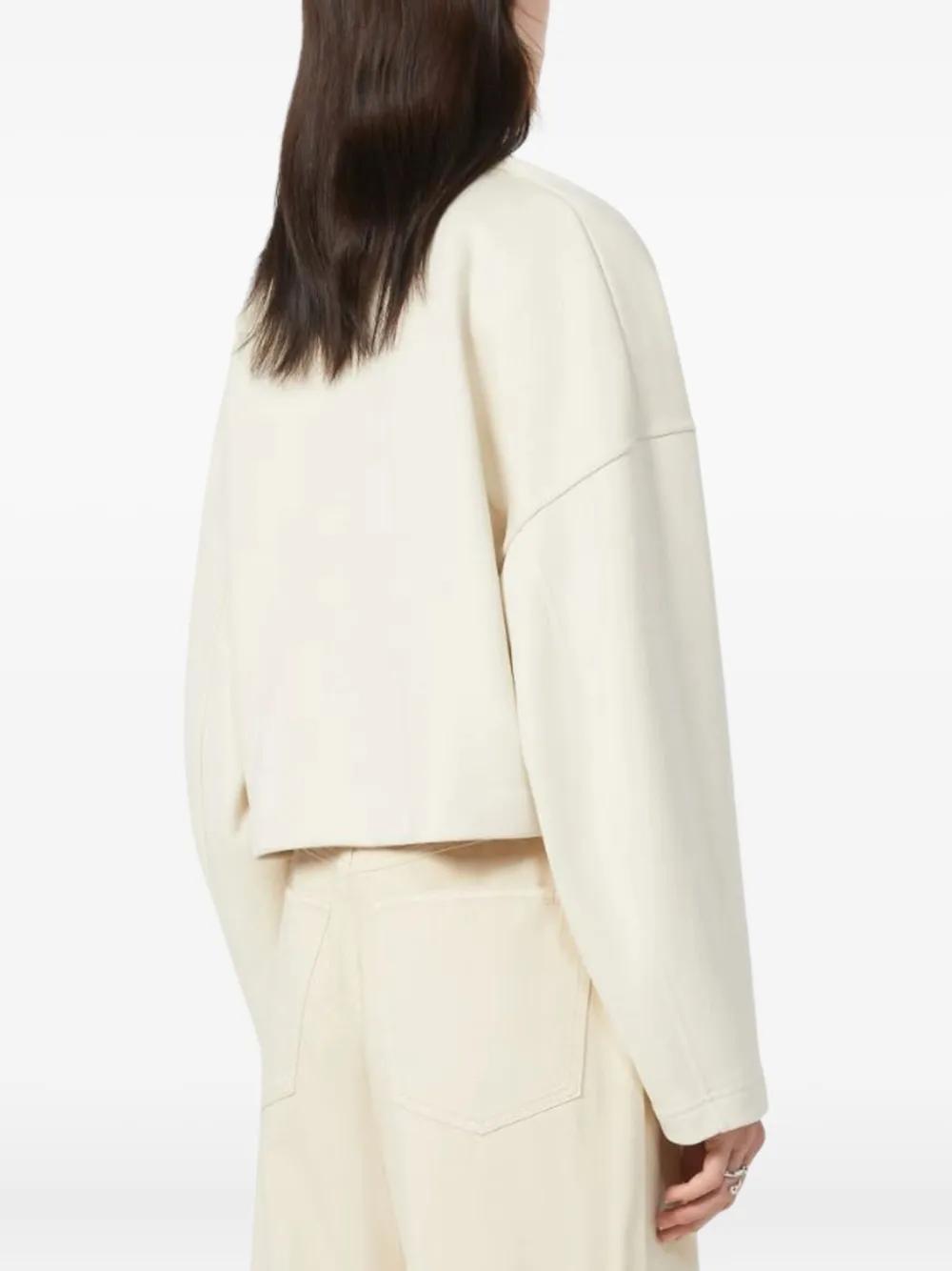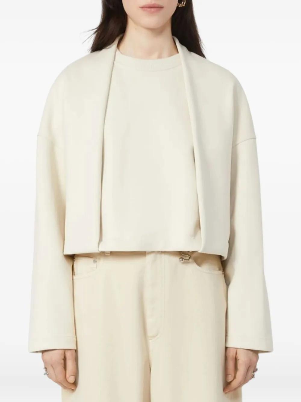 ivory cotton blend double layered construction round neck front shawl neck back rubberised logo