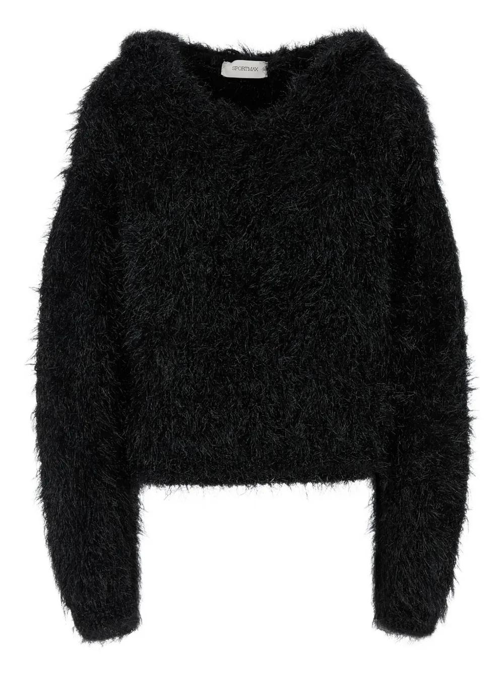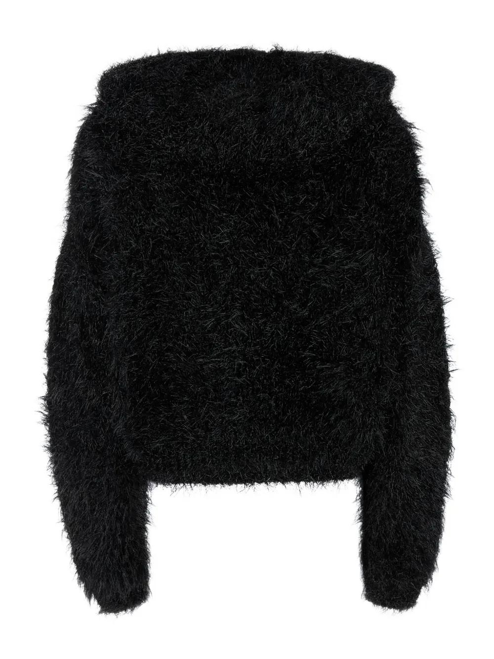 black alpaca wool-blend knitted construction brushed finish half front zip fastening high neck drop shoulder long sleeves cropped straight hem