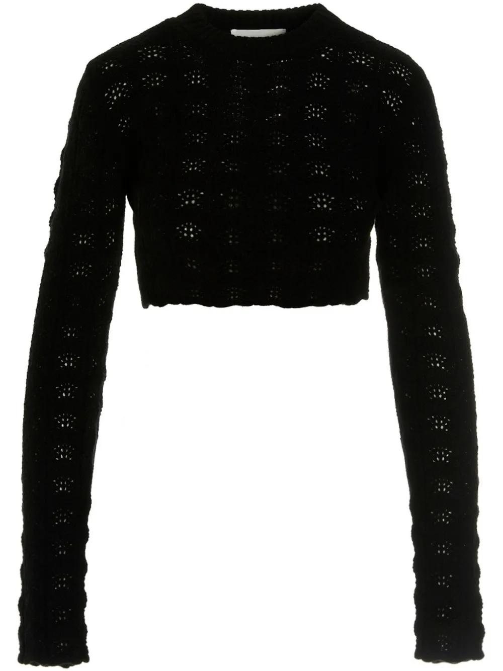 black/multicolour organic cotton blend cashmere blend fine knit signature Orb logo embroidery crew neck long sleeves ribbed cuffs and hem