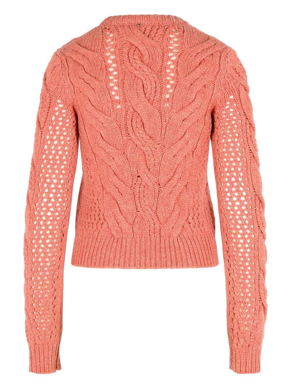 cinnamon brown ribbed knit round neck short front button fastening long sleeves straight hem